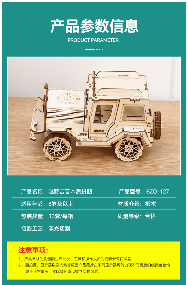 나무 크로스 컨트리 장난감 자동차 3d 직소 퍼즐 Bezhiqi 어린이 선물 지프 대외 무역 국경 간 포장 선물스토어 가기