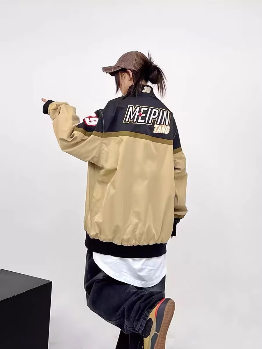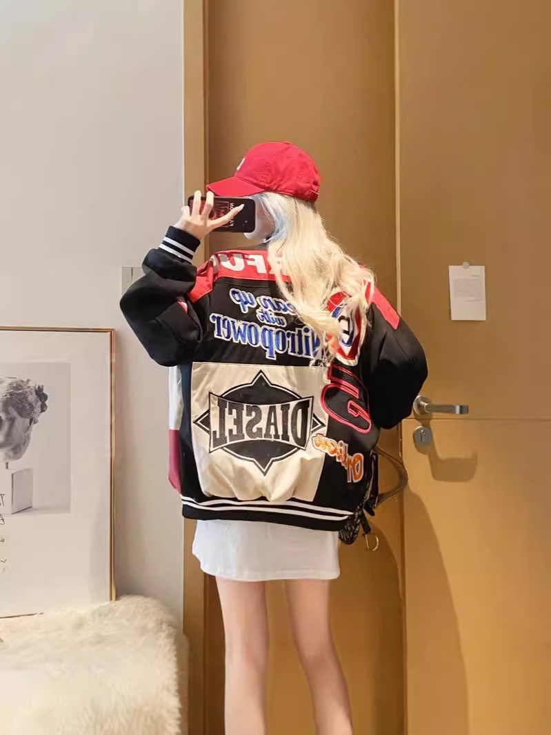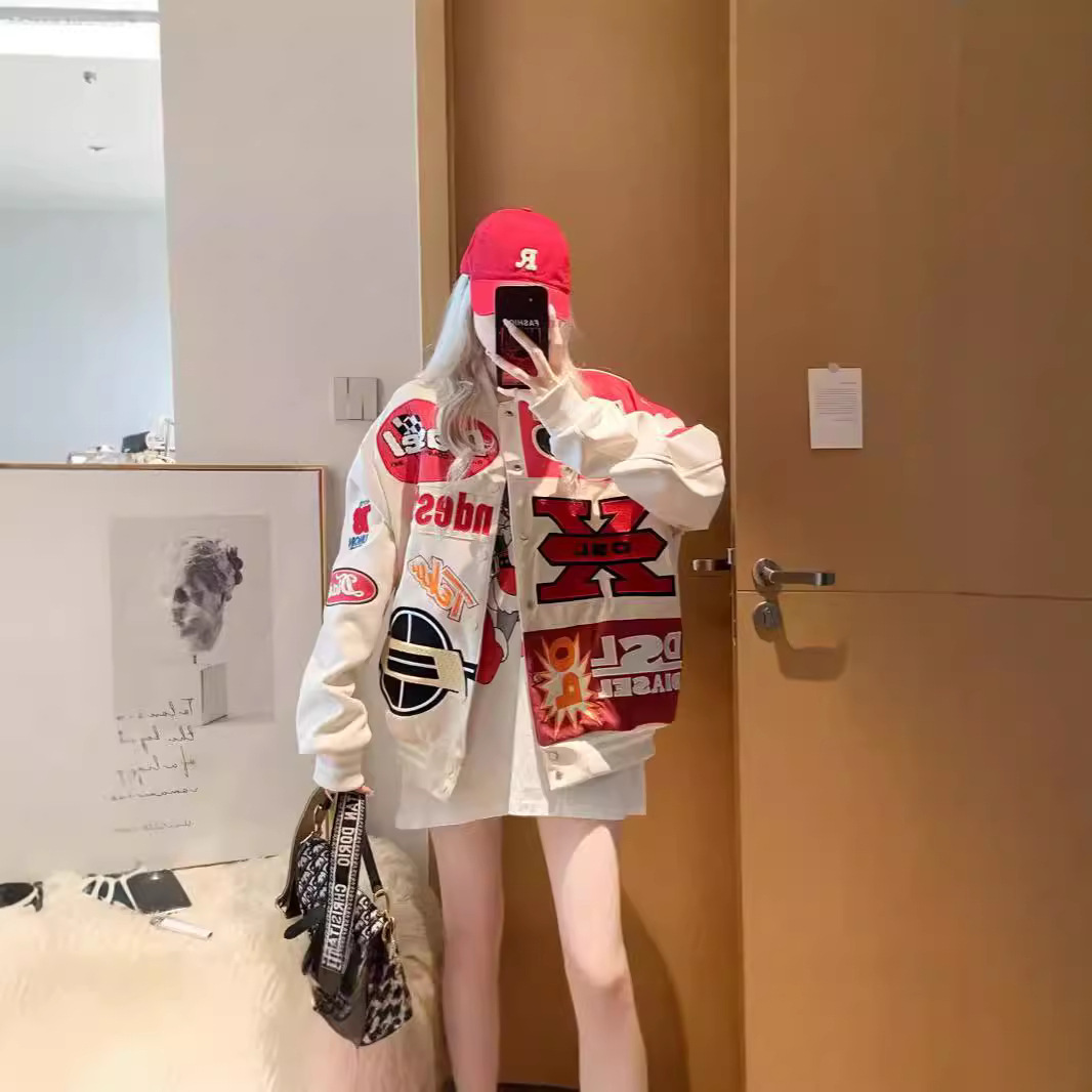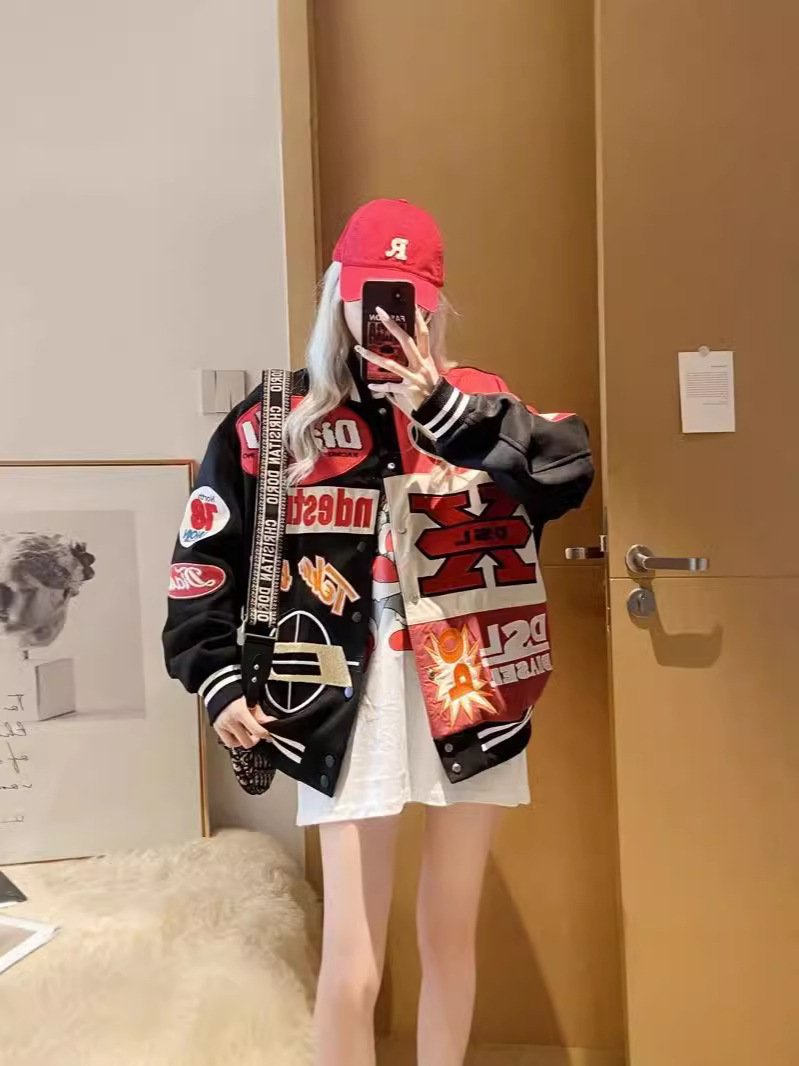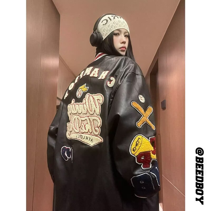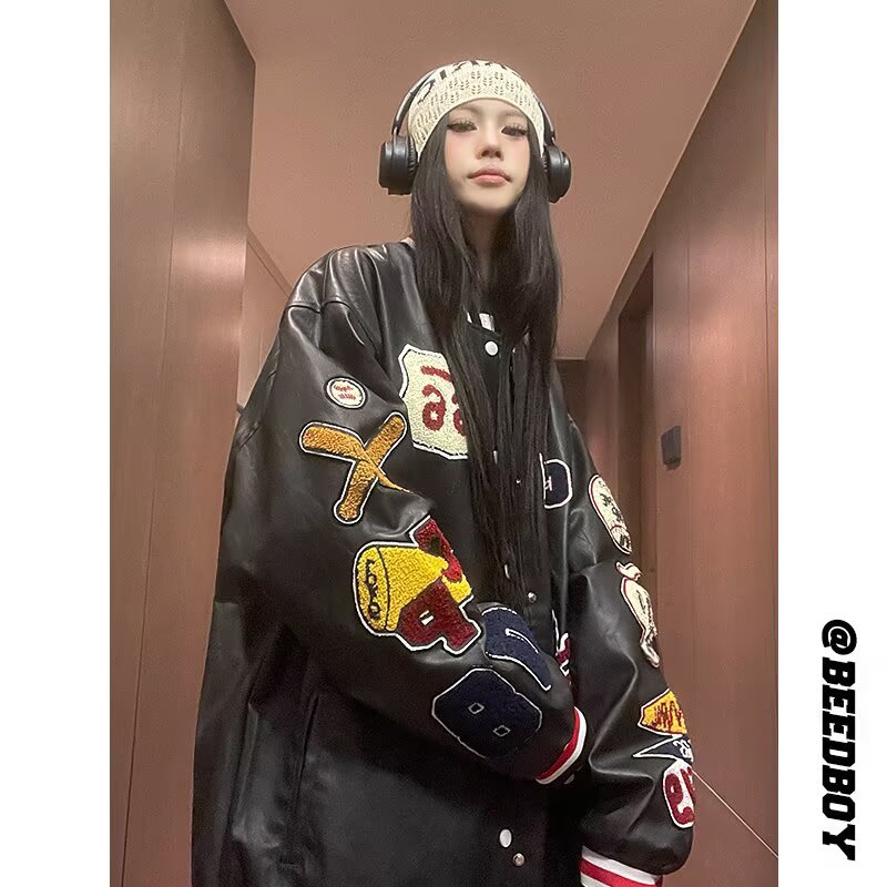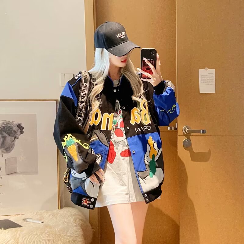트렌디 한 브랜드 재킷 2025 새로운 미국 야구 세트 재킷 여성 봄과 가을 만화 자수 오토바이 느슨한 국경 여성 의류스토어 가기