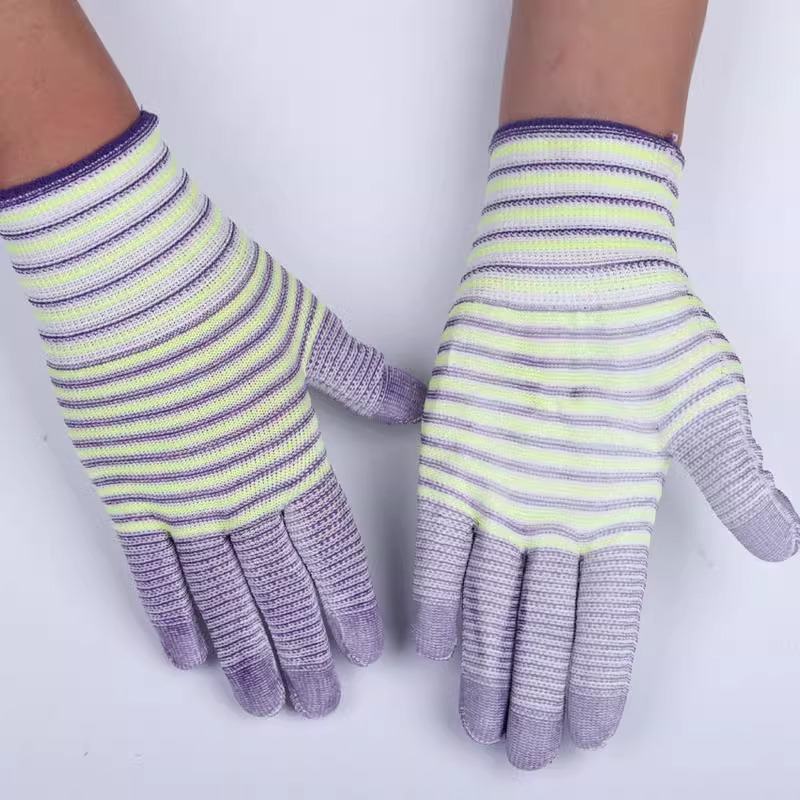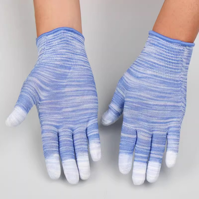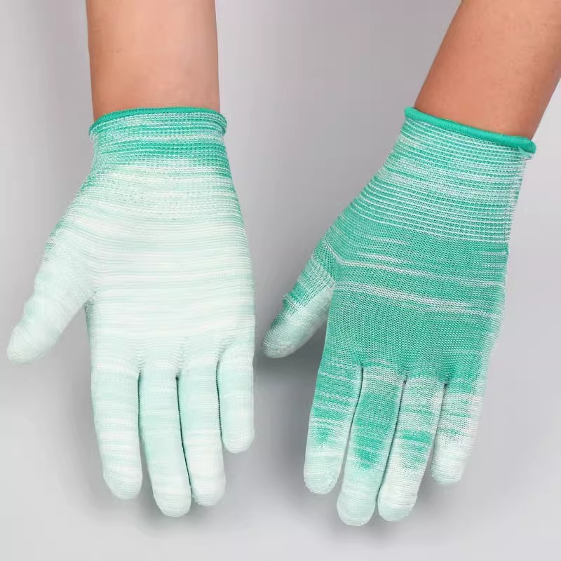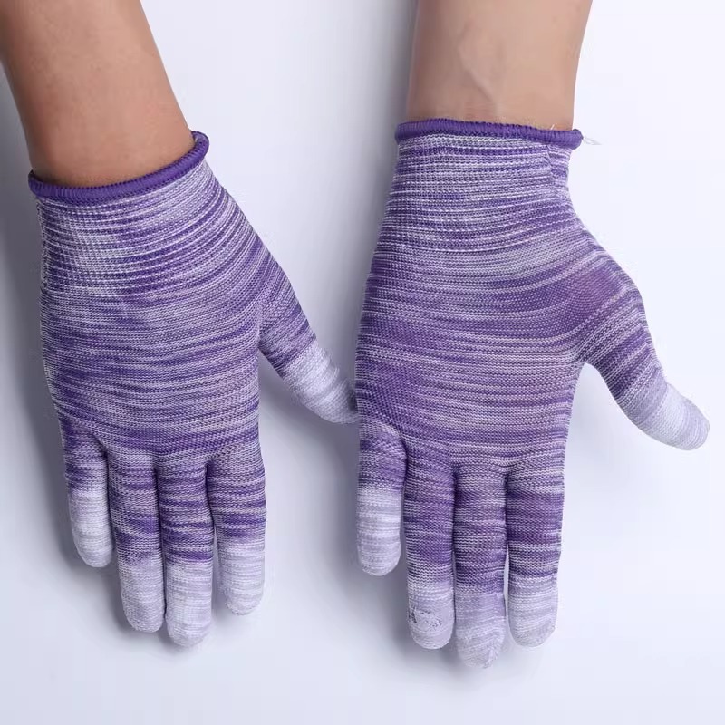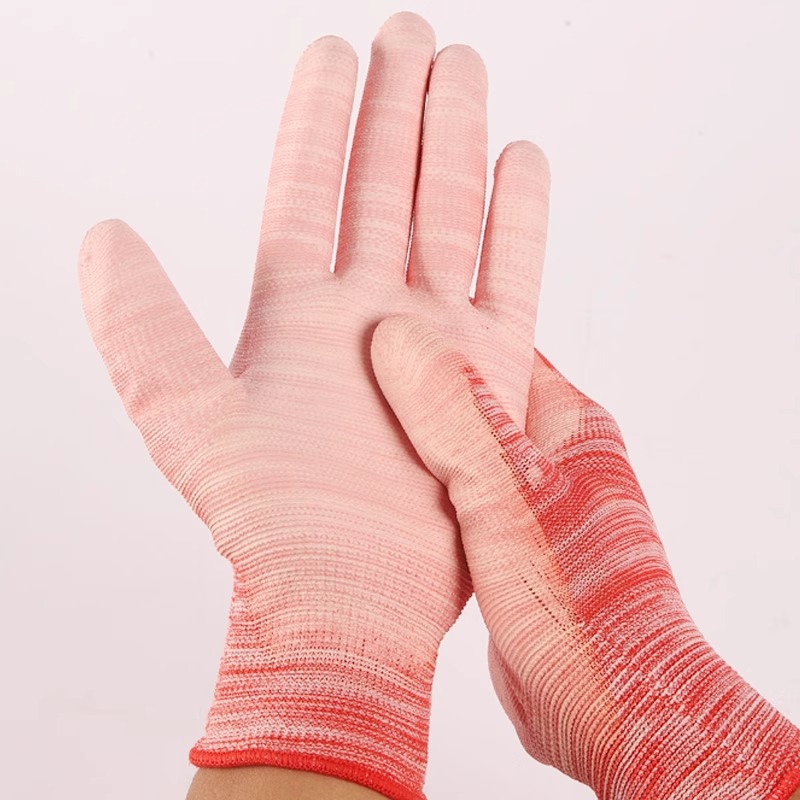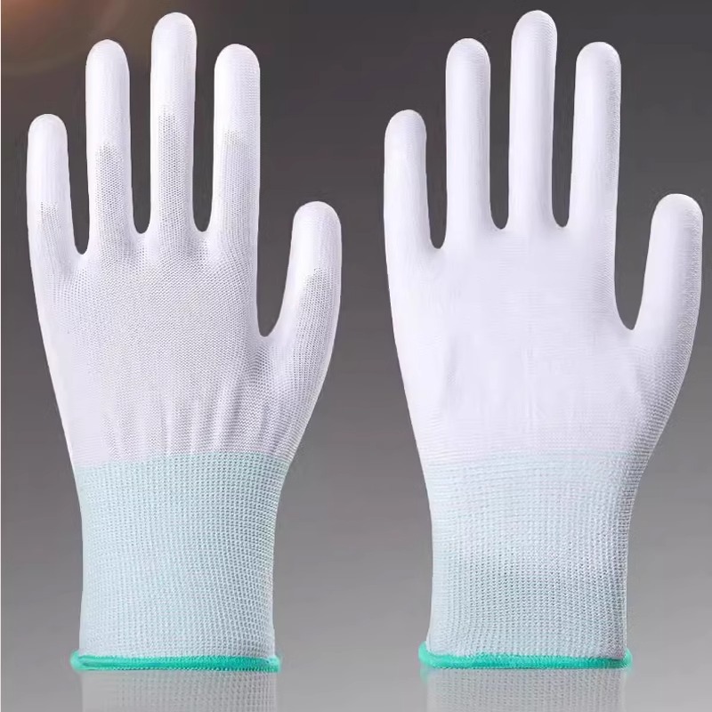 얇은 PU 코팅 손바닥과 손가락, 미끄럼 방지 및 내마모성 나일론 코팅, 가볍고 통기성이 뛰어난 남성용 및 여성용 정전기 방지 노동 보호 장갑