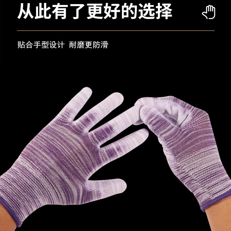 얇은 PU 코팅 손바닥과 손가락, 미끄럼 방지 및 내마모성 나일론 코팅, 가볍고 통기성이 뛰어난 남성용 및 여성용 정전기 방지 노동 보호 장갑스토어 가기