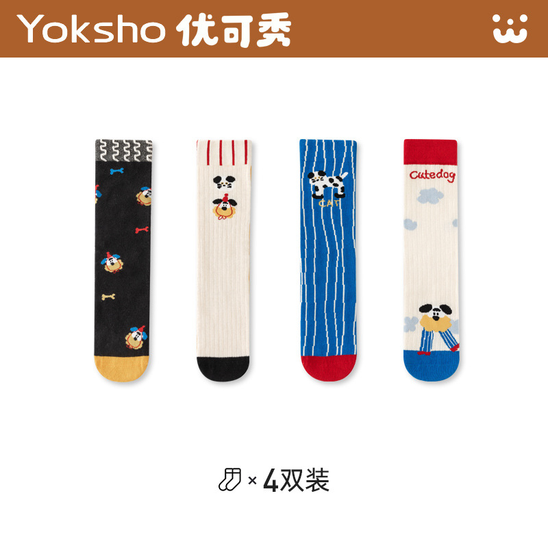 2025년 신상 하이삭스 유럽 및 미국 스타일 스포츠 봄 가을 면 만화 양말 어린이 양말 남아용 강아지 중간 길이 양말스토어 가기