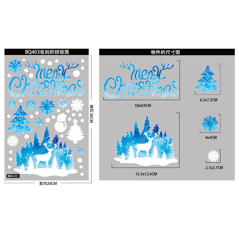 크리스마스 스티커 작은 창 홈 장식 유리 정전기 스티커 블루 창 스티커 크리스마스 교수형 볼 트리 엘크 스티커