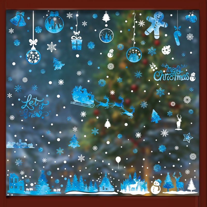 크리스마스 스티커 작은 창 홈 장식 유리 정전기 스티커 블루 창 스티커 크리스마스 교수형 볼 트리 엘크 스티커스토어 가기