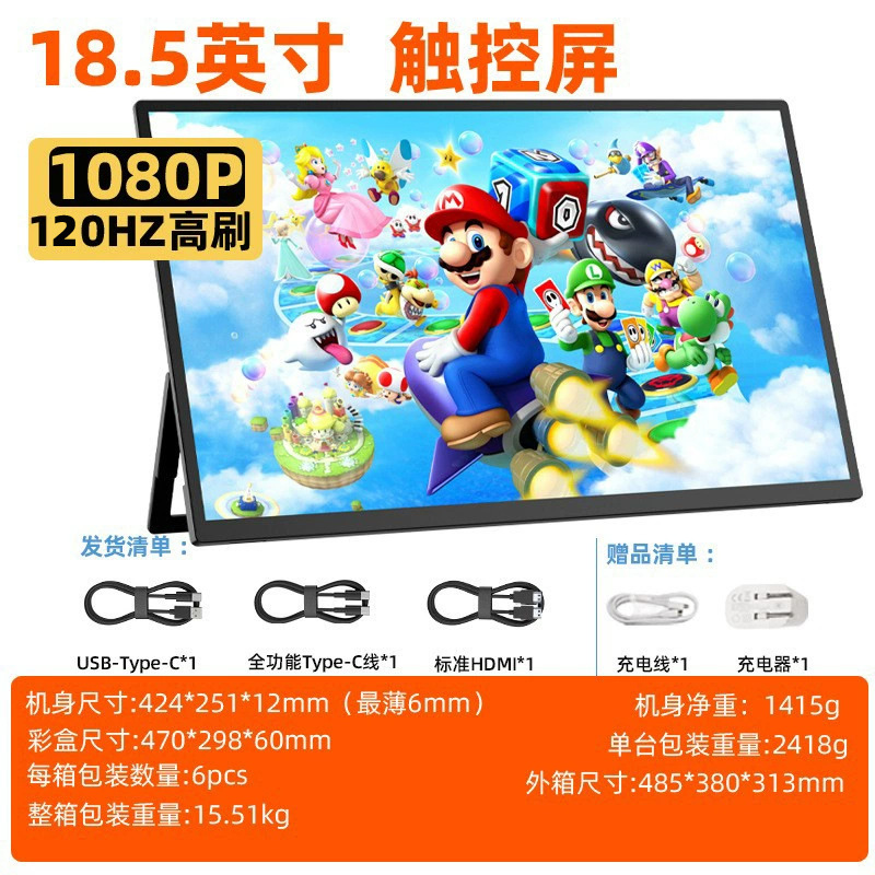 국경 18.5 인치 100HZ 터치 휴대용 디스플레이 ps5/스위치 컴퓨터 서브 스크린 1080IPS HD스토어 가기