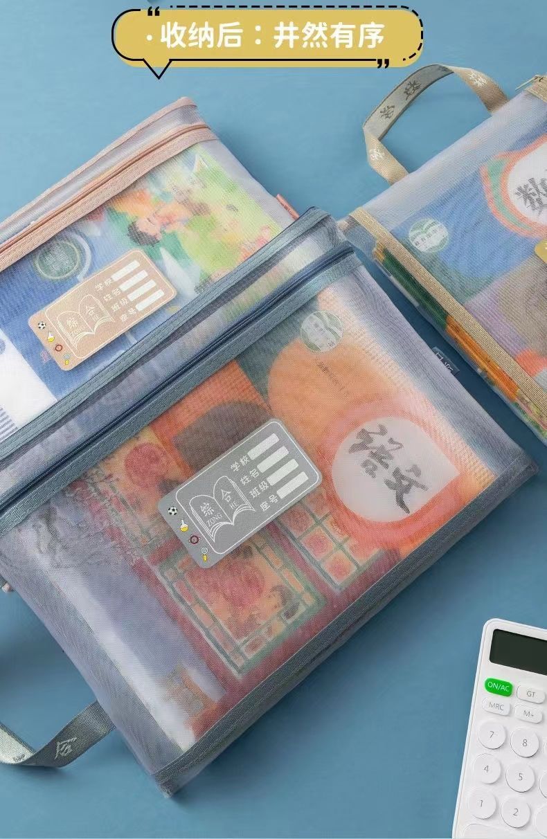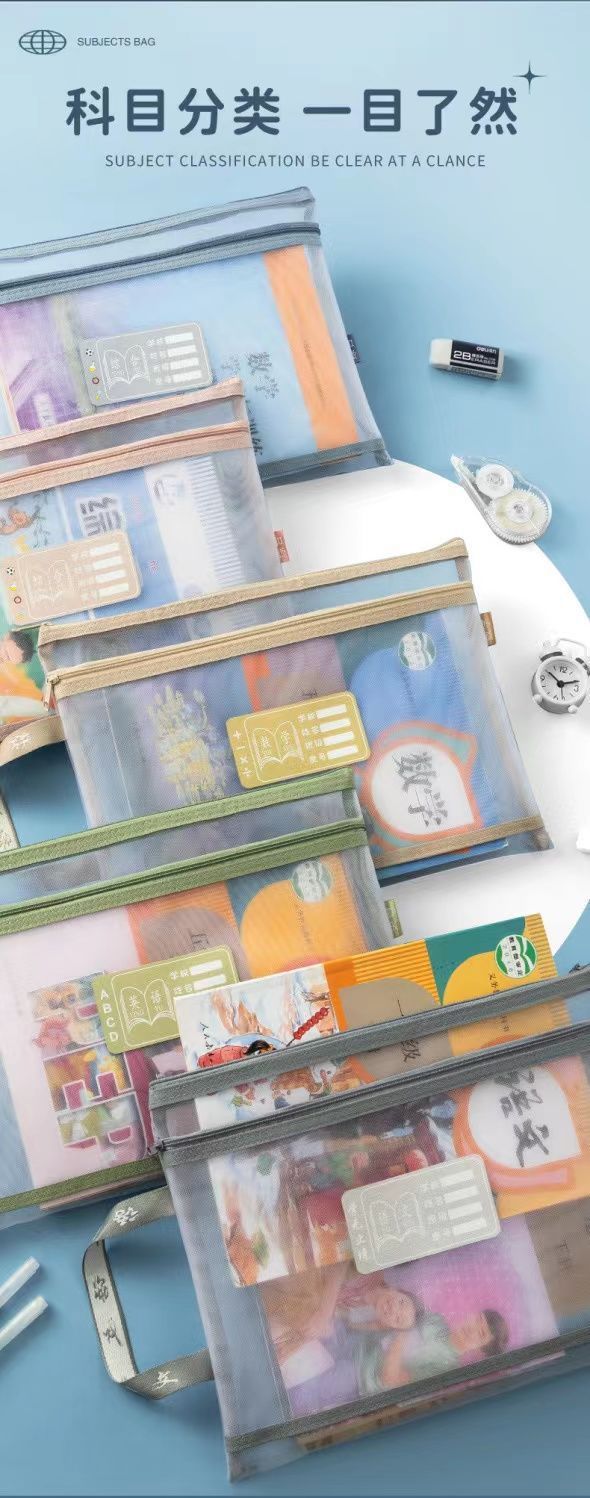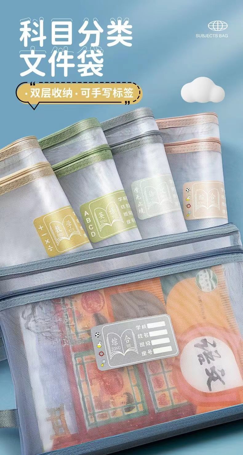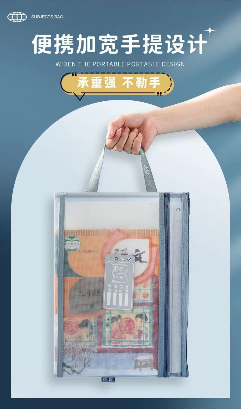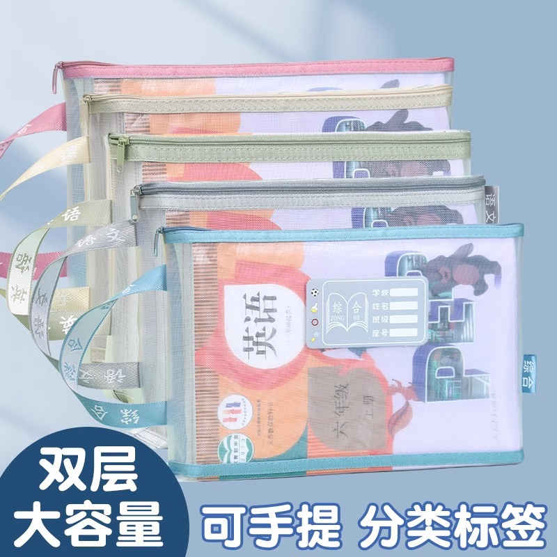 이중층 과목 분류 가방 A4 투명 메쉬 파일 보관 가방 지퍼가 달린 초등학생 및 중학생 핸드백스토어 가기