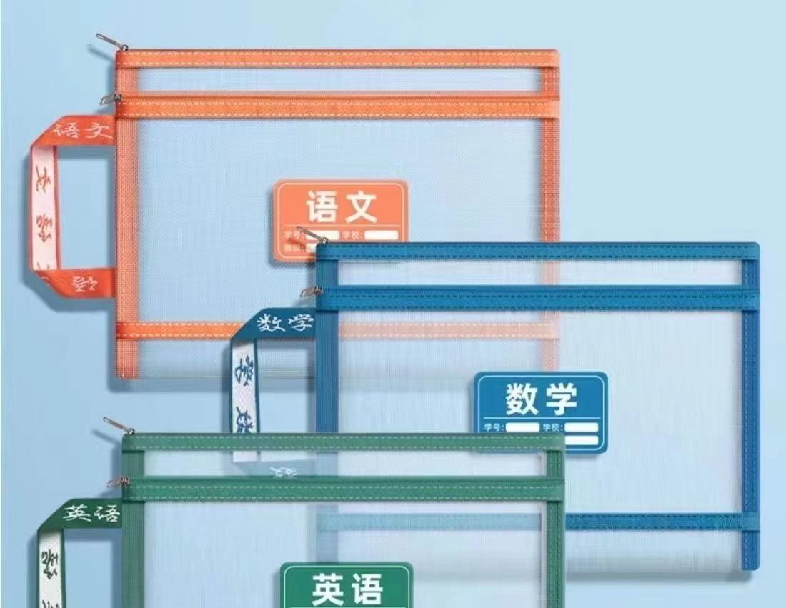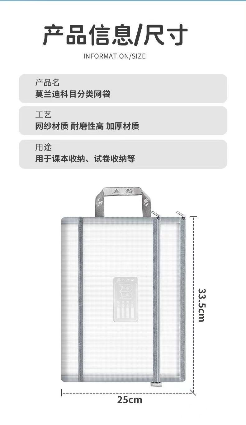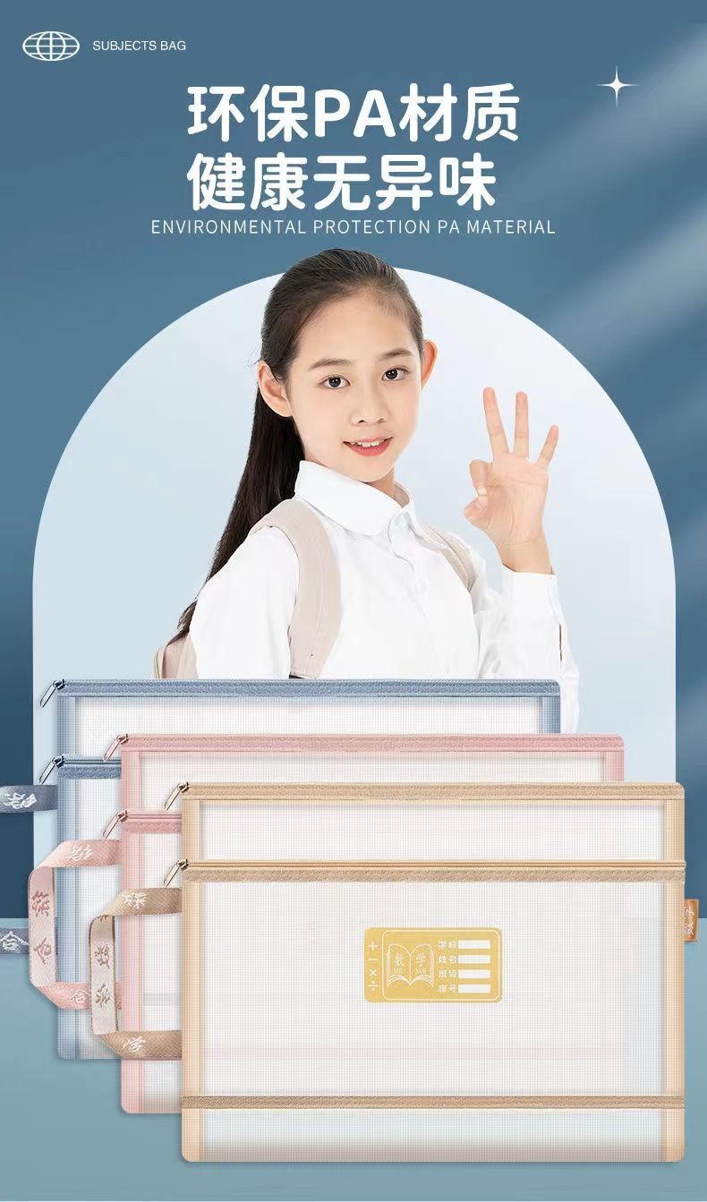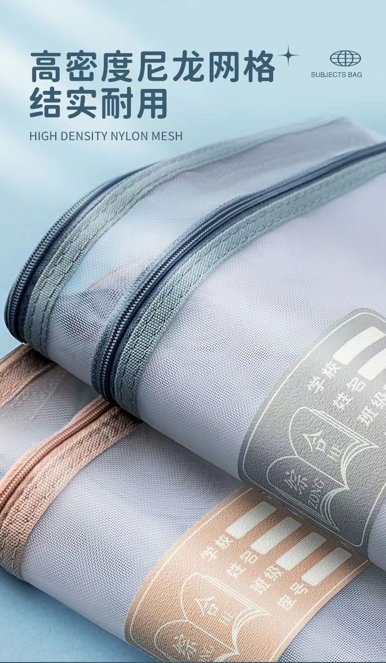 이중층 과목 분류 가방 A4 투명 메쉬 파일 보관 가방 지퍼가 달린 초등학생 및 중학생 핸드백스토어 가기