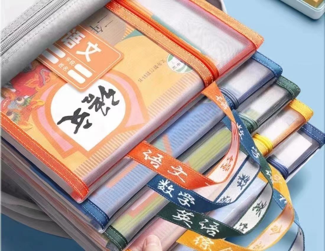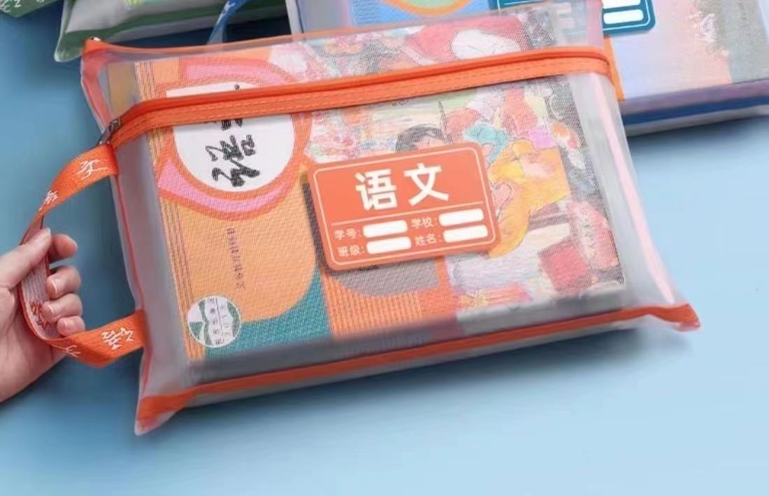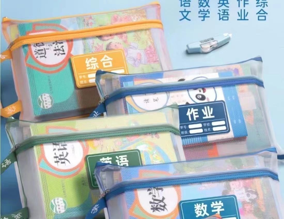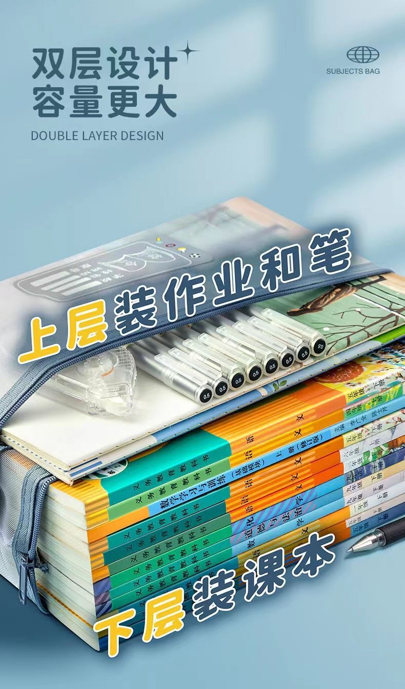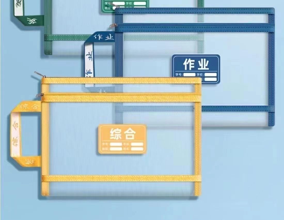 이중층 과목 분류 가방 A4 투명 메쉬 파일 보관 가방 지퍼가 달린 초등학생 및 중학생 핸드백스토어 가기
