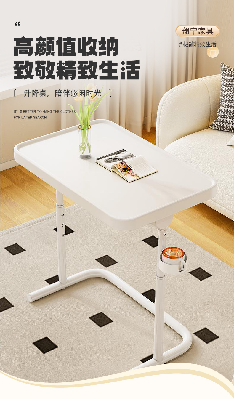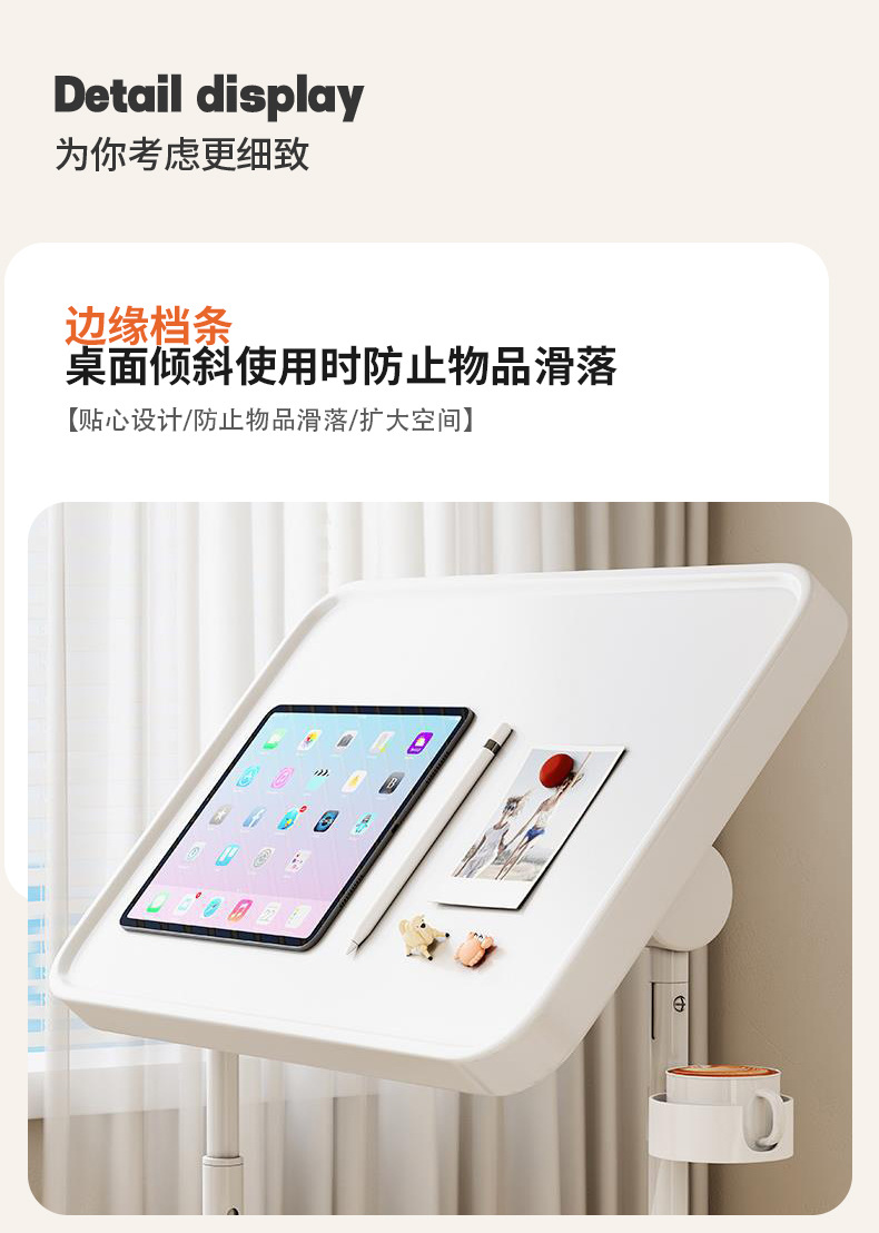 • [고강도 밀도판] 화이트 + 유니버셜 휠 + 컵홀더 / 3단 리프팅 가능