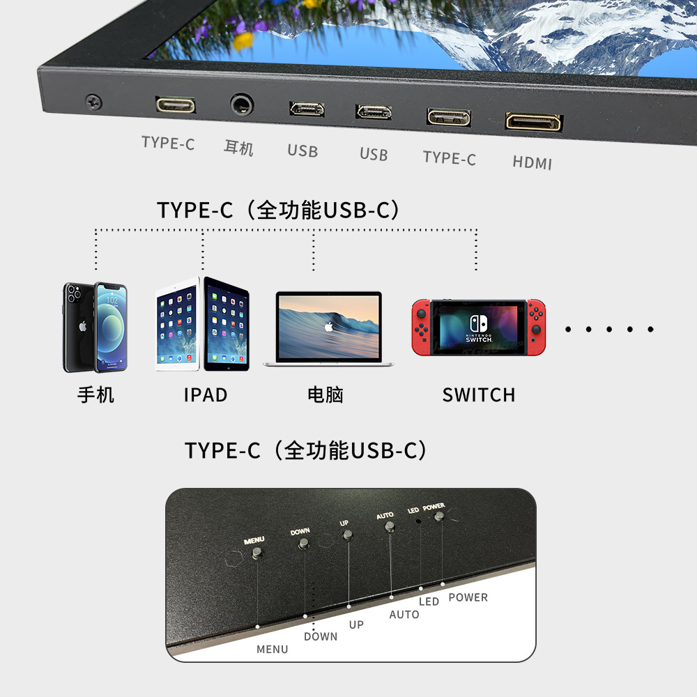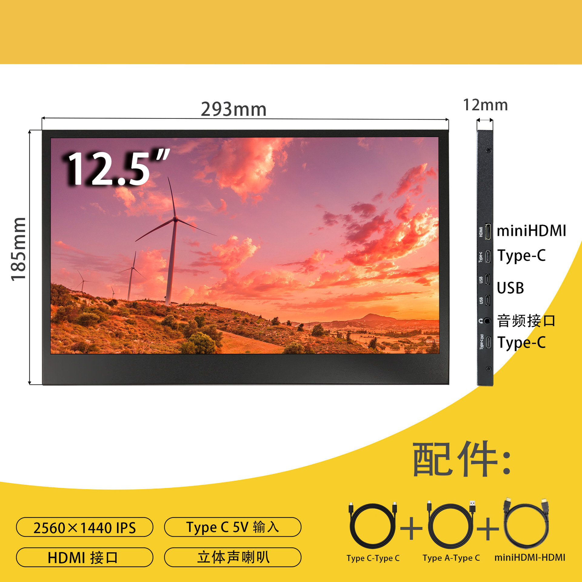 12.5inch 휴대용 모니터 4K HD 1080P 외부 휴대폰 노트북 확장 보조 화면을 통한 원선 통신