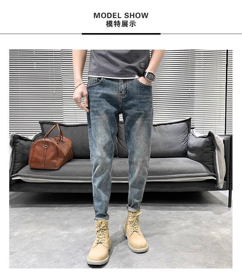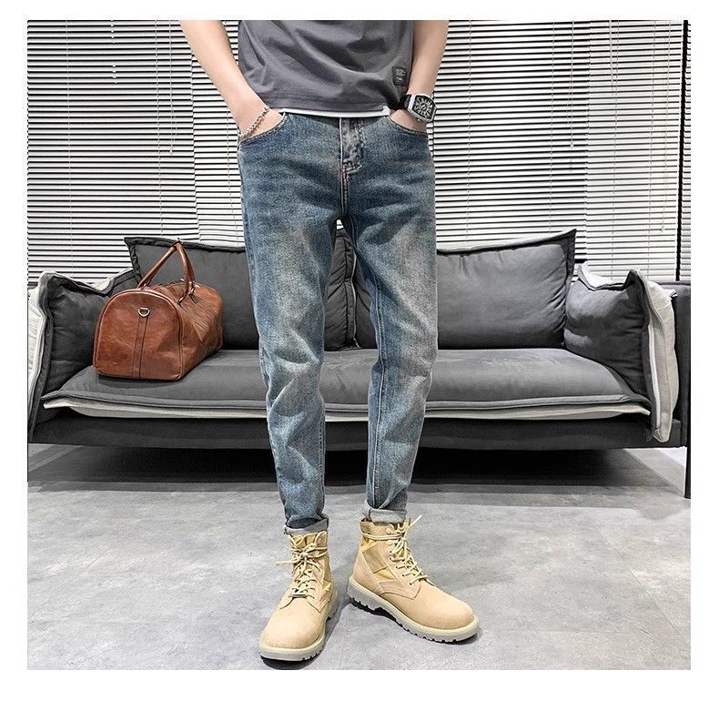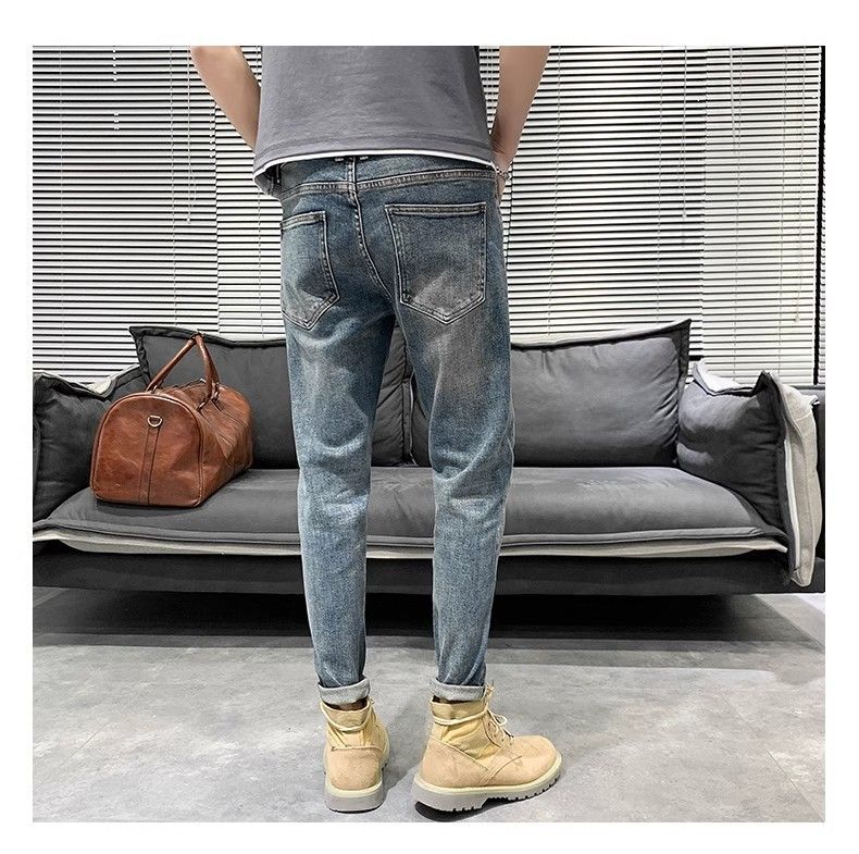 2024 여름 얇은 청바지 남자의 슬림 작은 발 유행 미국 스타일 하이 스트리트 느슨한 여름 유행 브랜드 캐주얼 바지스토어 가기
