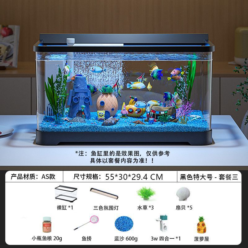 Kuo Ting 생태 물고기 탱크 거실 작은 가정용 데스크탑 풍경 빛과 3 대 1 필터가있는 플라스틱 수족관