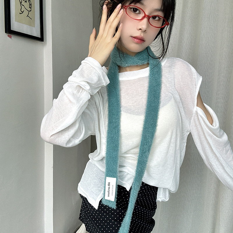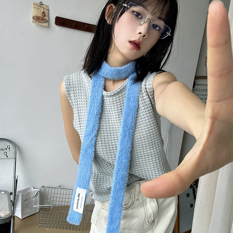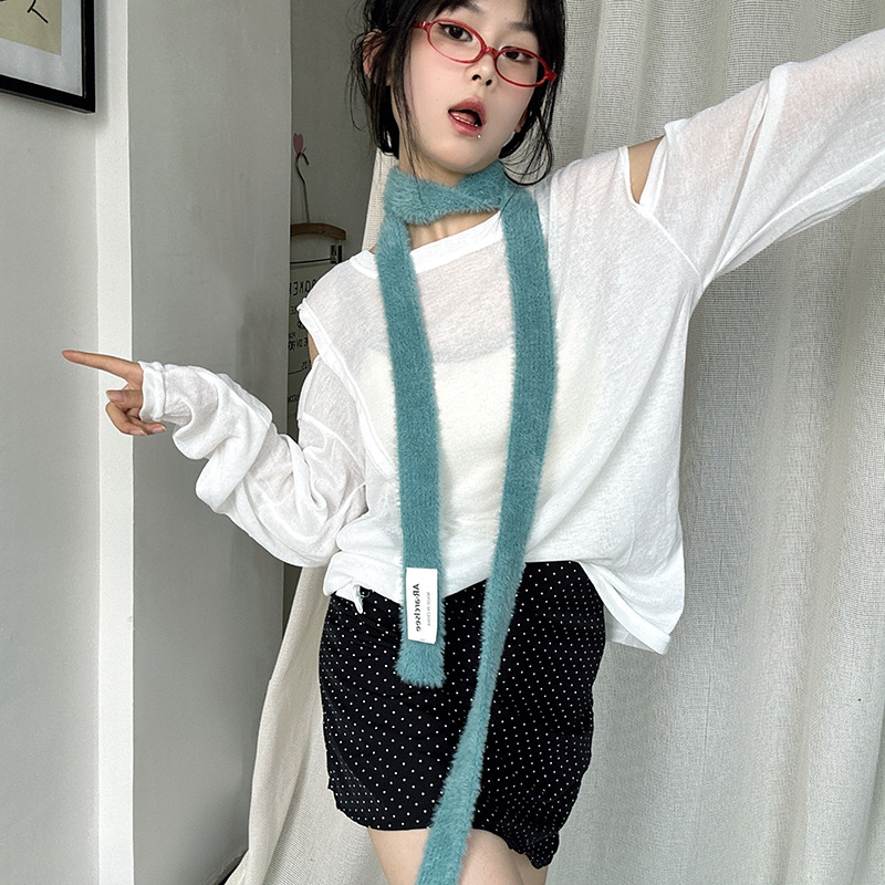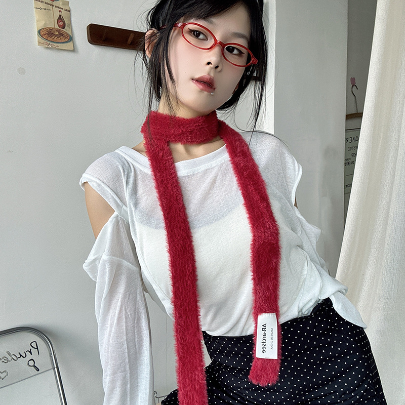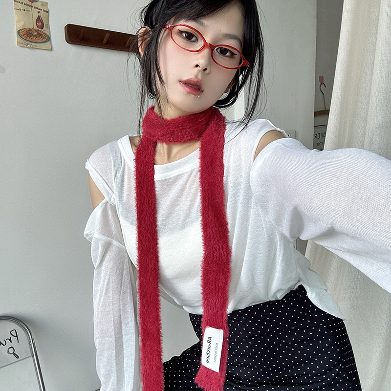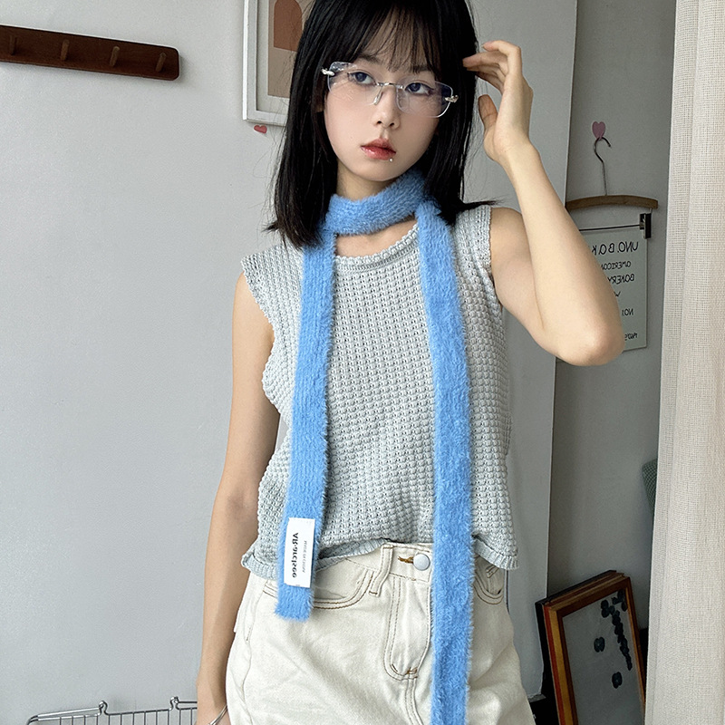 떨어지는 수영장 니트 ~ 유럽과 미국의 틈새 디자인 긴 좁은 스카프 여성의 봄과 가을 패션 단색 장식 스카프스토어 가기