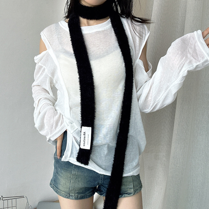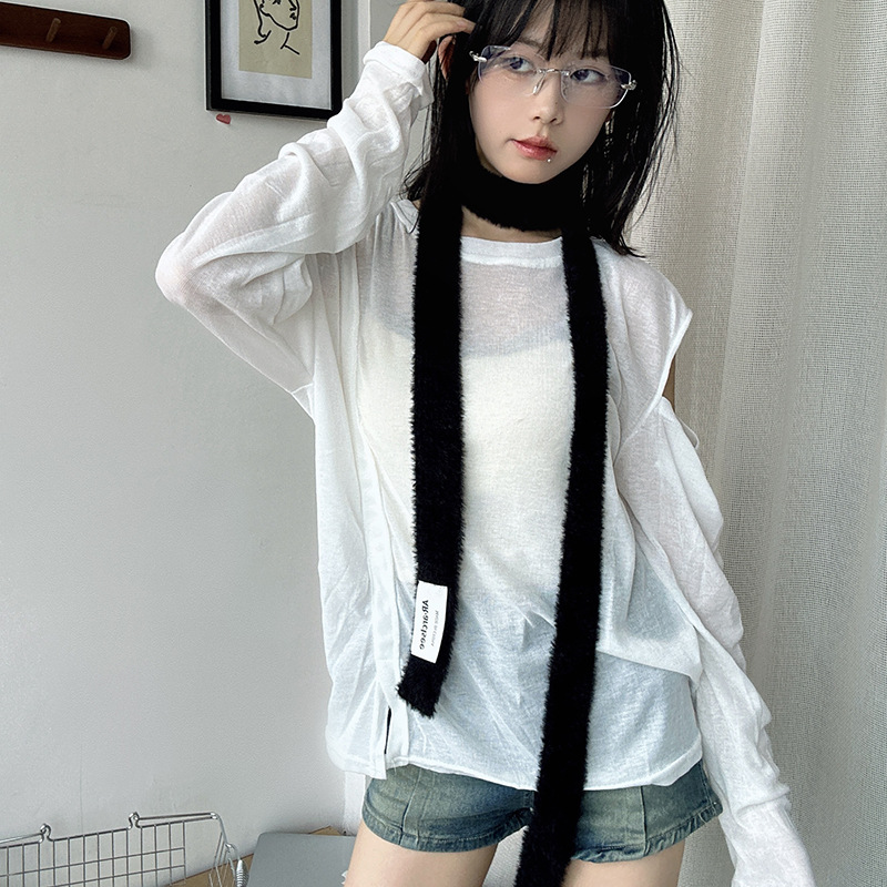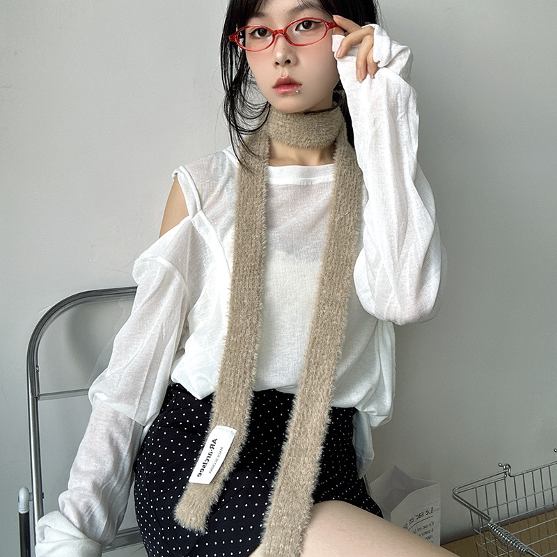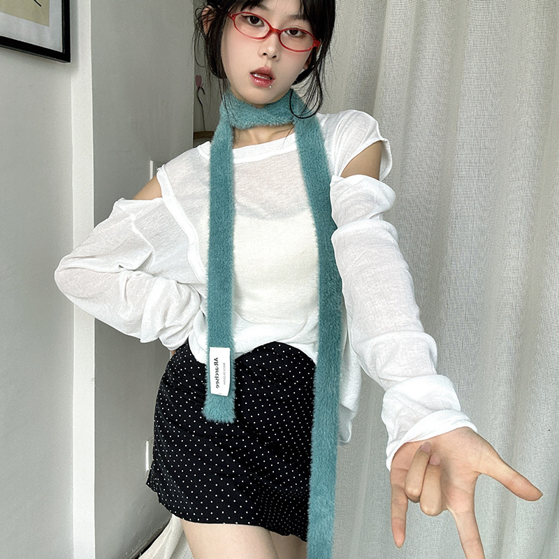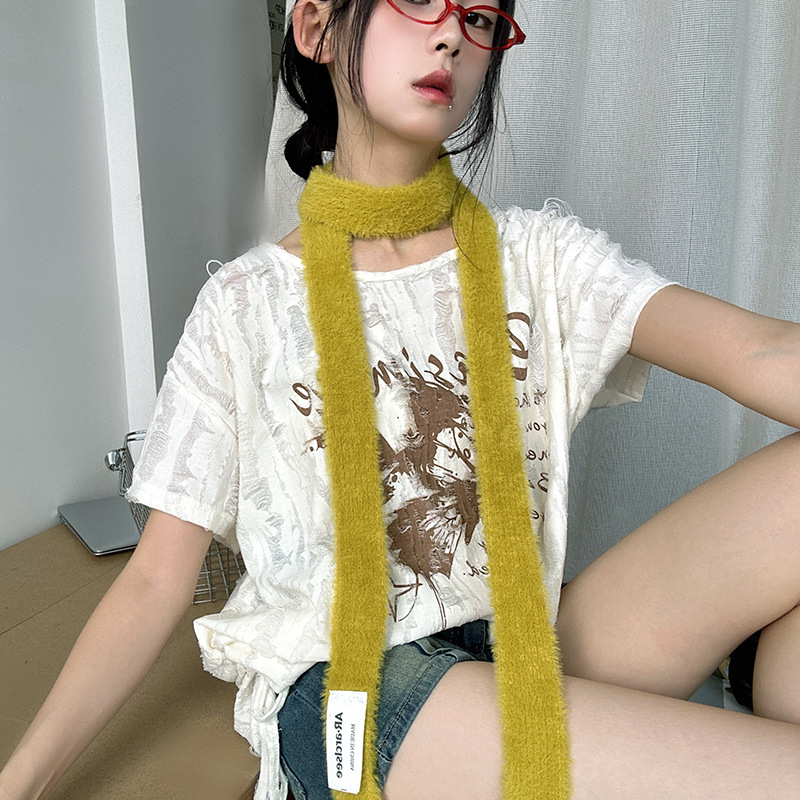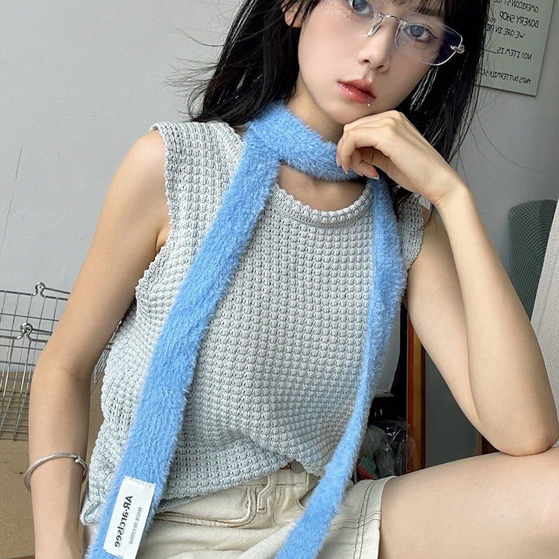 떨어지는 수영장 니트 ~ 유럽과 미국의 틈새 디자인 긴 좁은 스카프 여성의 봄과 가을 패션 단색 장식 스카프스토어 가기