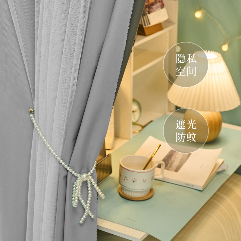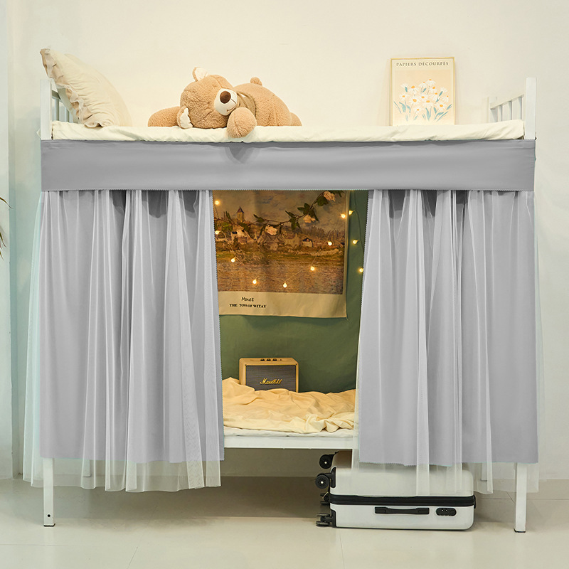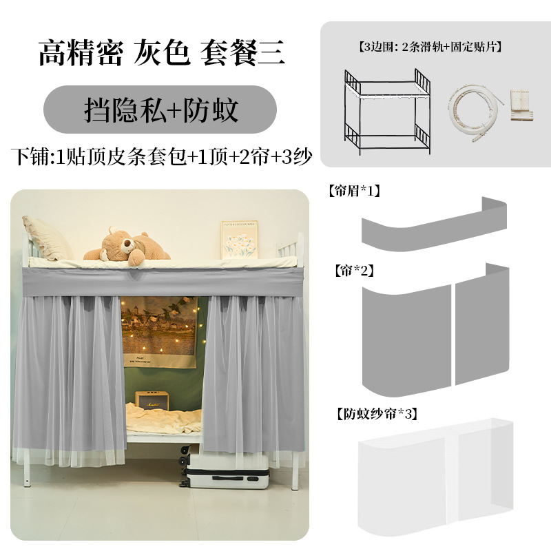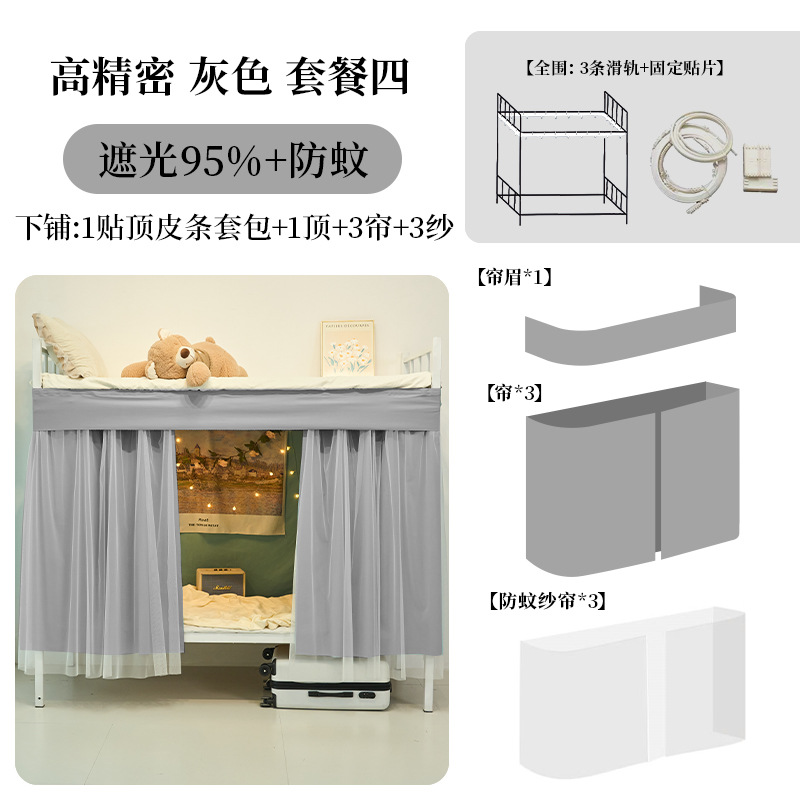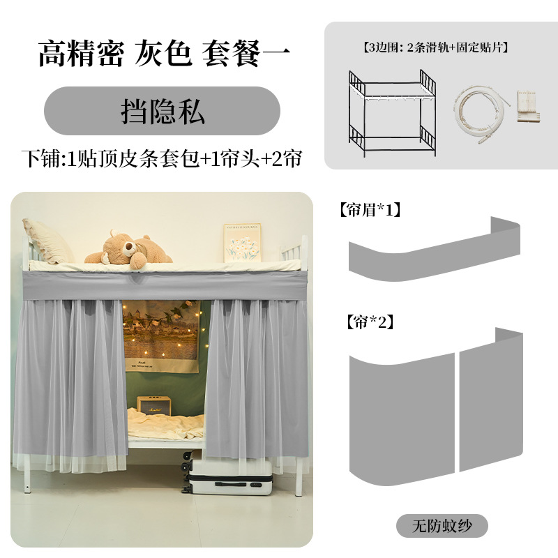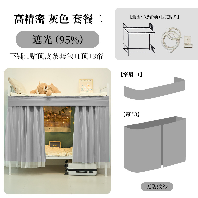 새로운 가죽 스트립 더블 트랙 물리적 고정밀 음영 침대 커튼 대학 기숙사 낮은 정박 특수 학생 모기장 회색스토어 가기