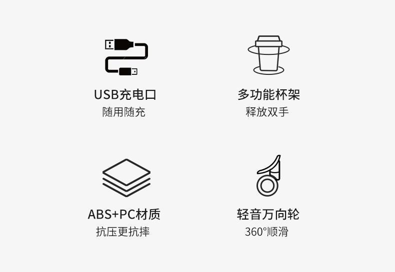 • 매력적인 블랙/전면 개구부 + USB 충전 + 컵 홀더/지퍼 스타일