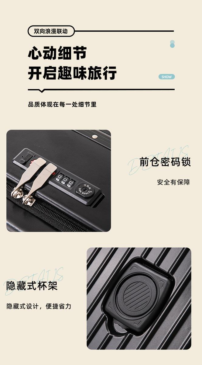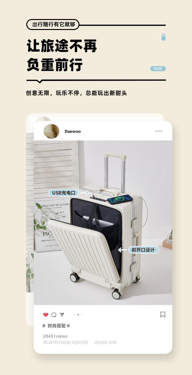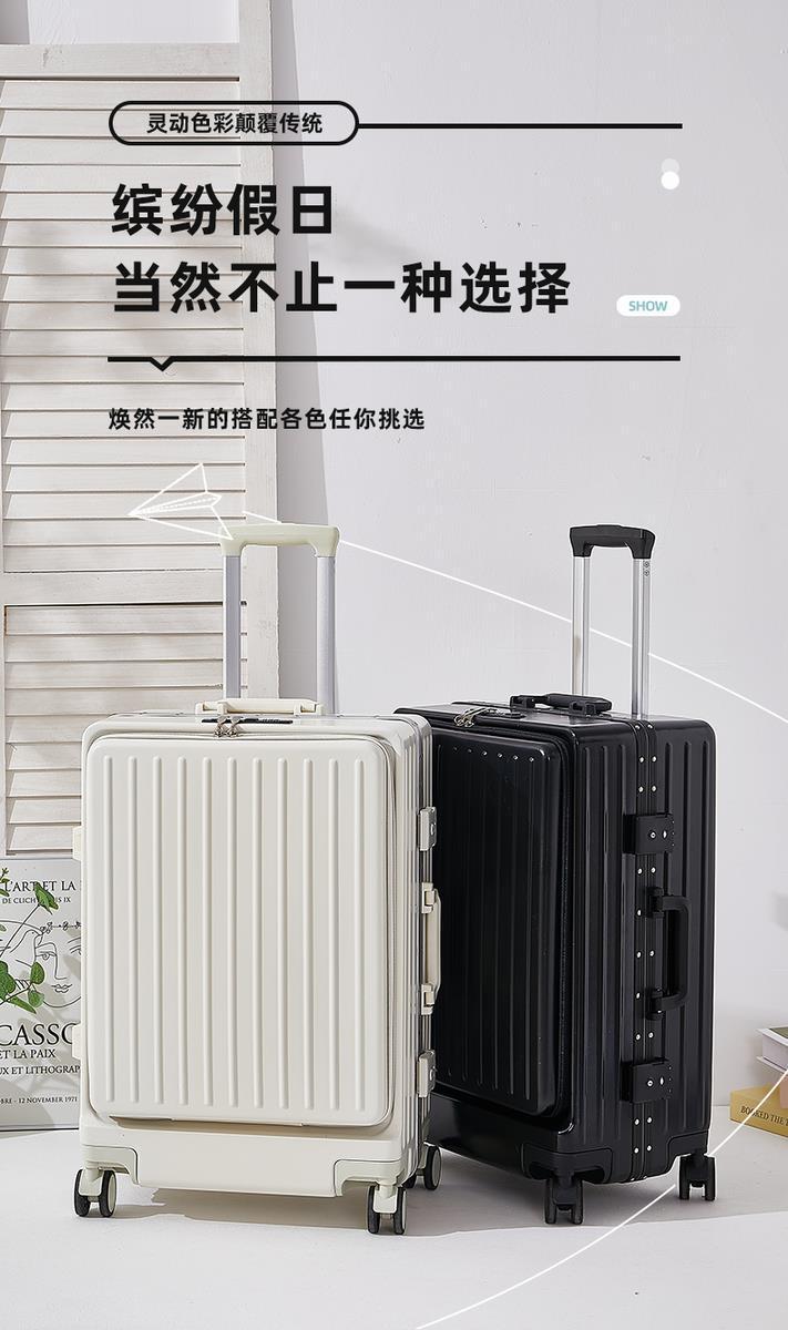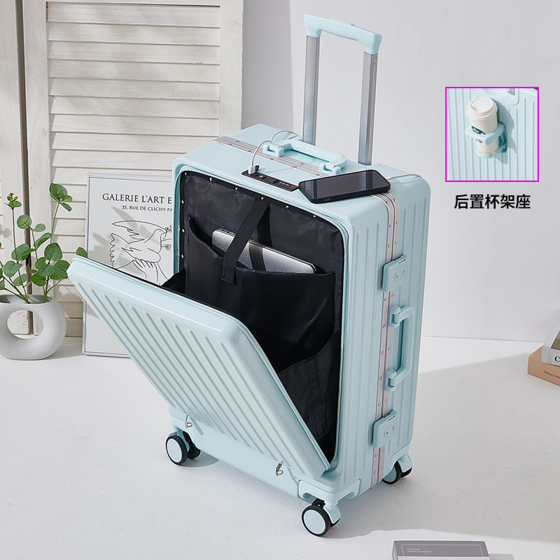 수하물 상자 여성의 2024 새로운 전면 오프닝 타이로드 가방 유니버설 휠 다기능 암호 상자 탑승 상자스토어 가기