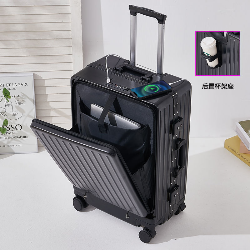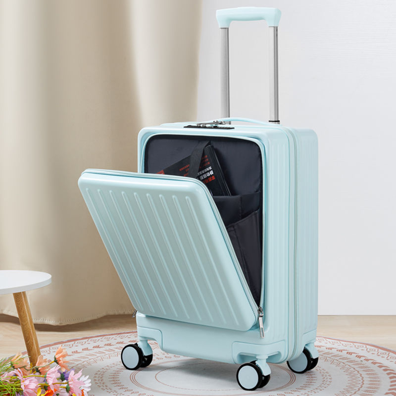 수하물 상자 여성의 2024 새로운 전면 오프닝 타이로드 가방 유니버설 휠 다기능 암호 상자 탑승 상자