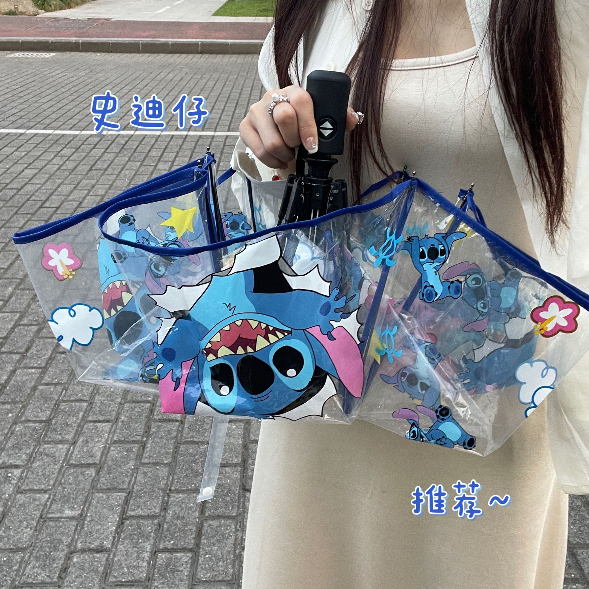 높은 가치 인터넷-유명한 만화 투명 플라스틱 우산 남성과 여성을위한 완전 자동 오프닝 우산 귀여운 접는 학생 두꺼운 우산스토어 가기