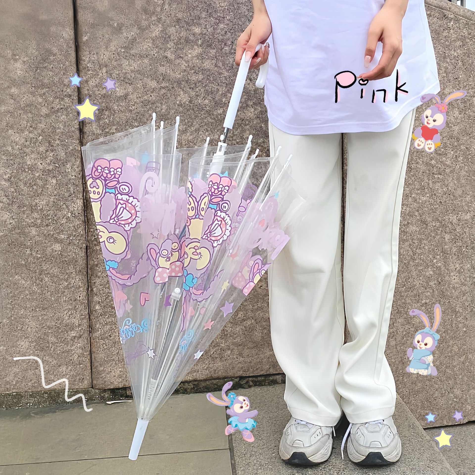 높은 가치 인터넷-유명한 만화 투명 플라스틱 우산 남성과 여성을위한 완전 자동 오프닝 우산 귀여운 접는 학생 두꺼운 우산
