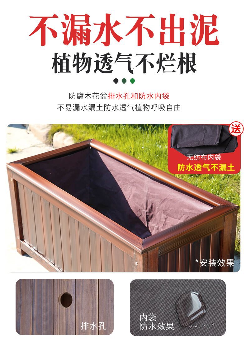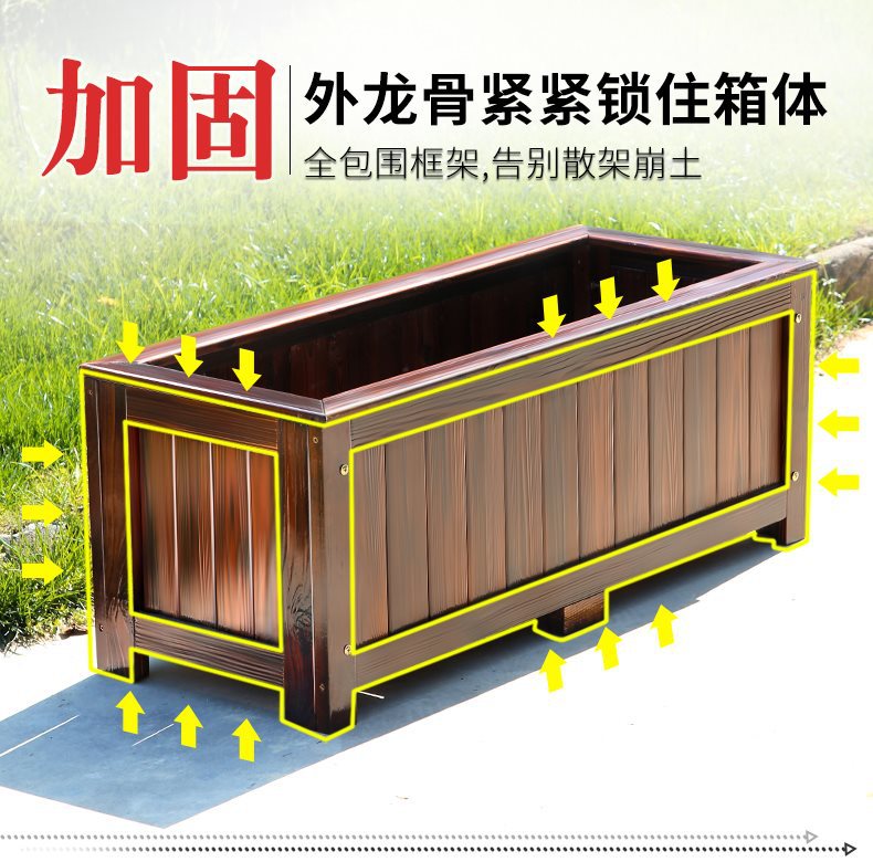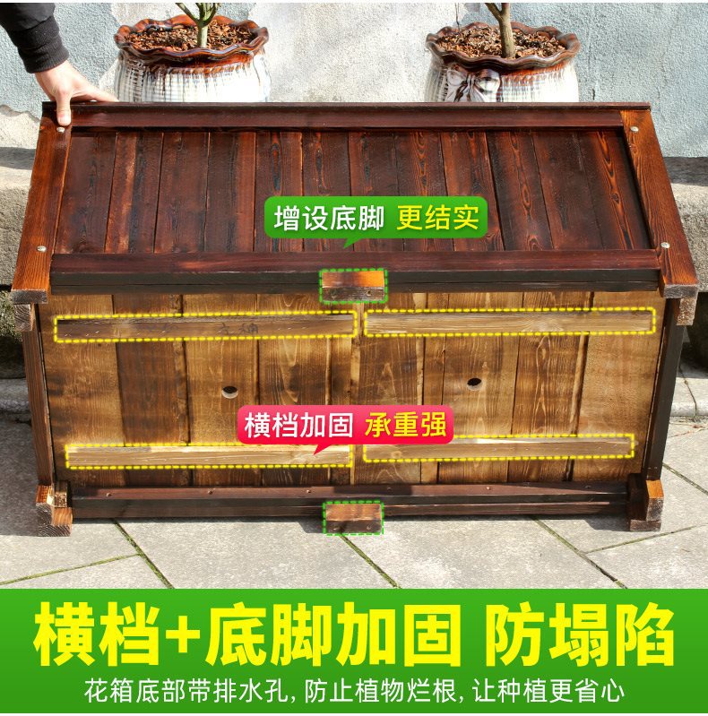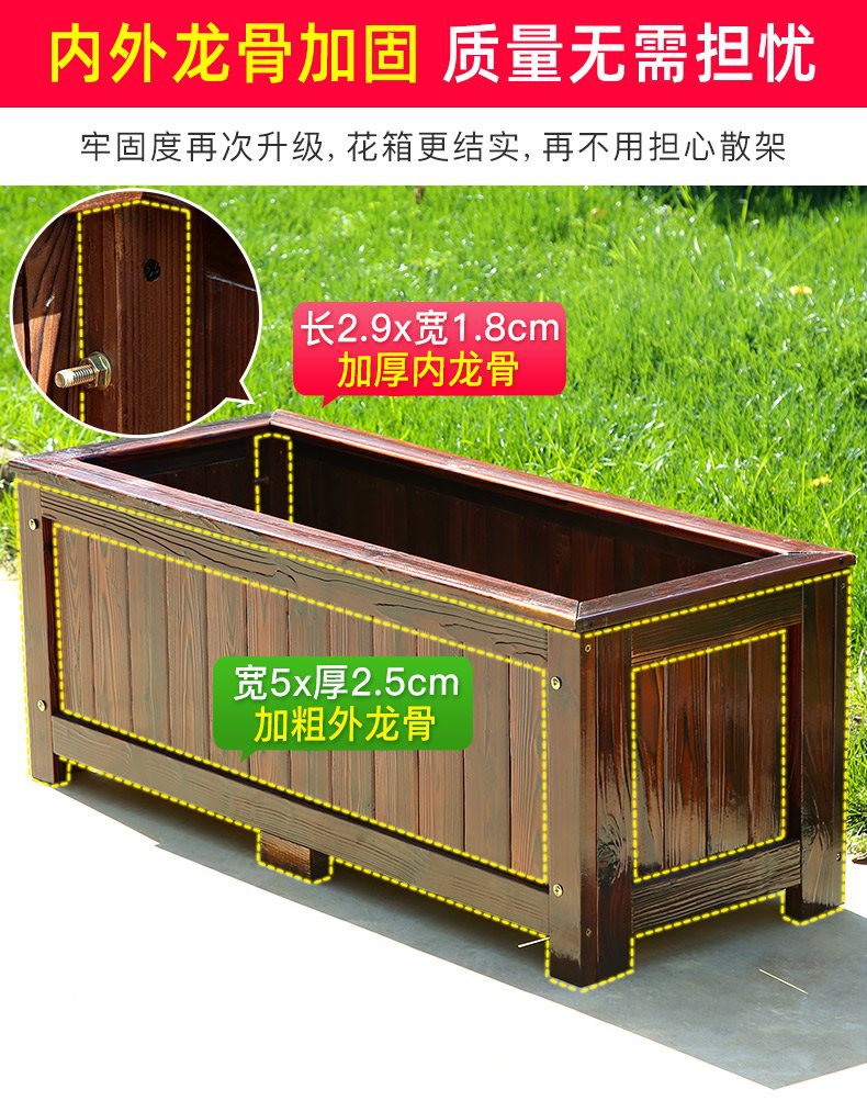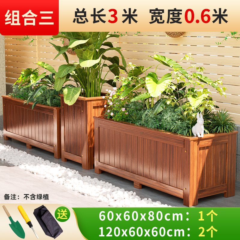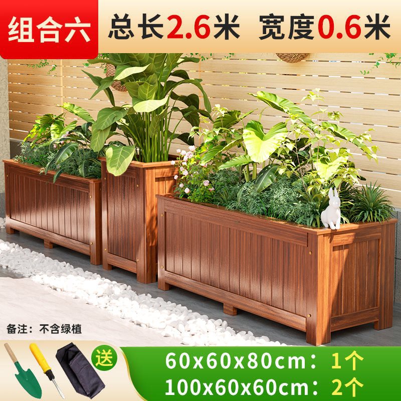 부식 방지 나무 꽃 상자 조합 야외 안뜰 탄화 단단한 나무 꽃 냄비 발코니 야채 냄비 대형 심기 상자 직사각형