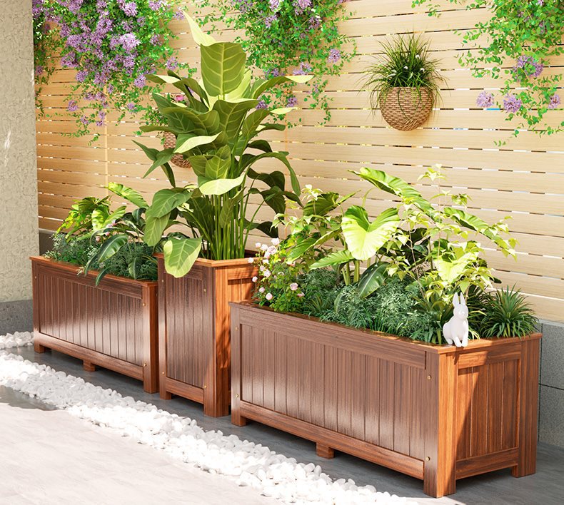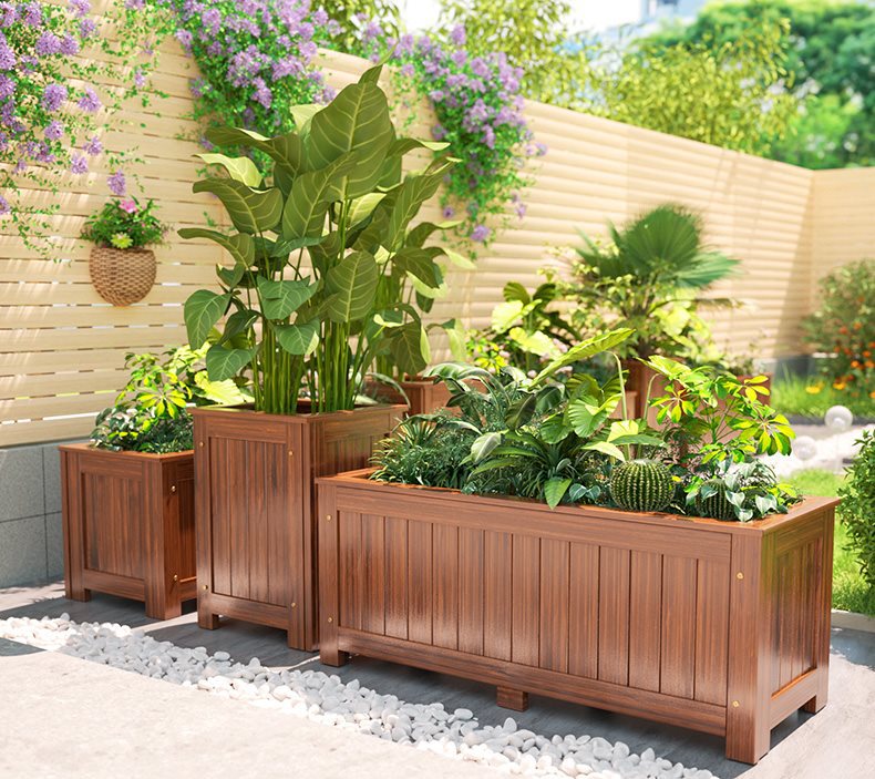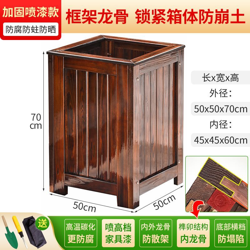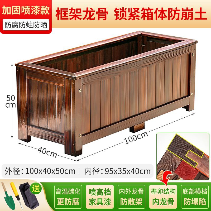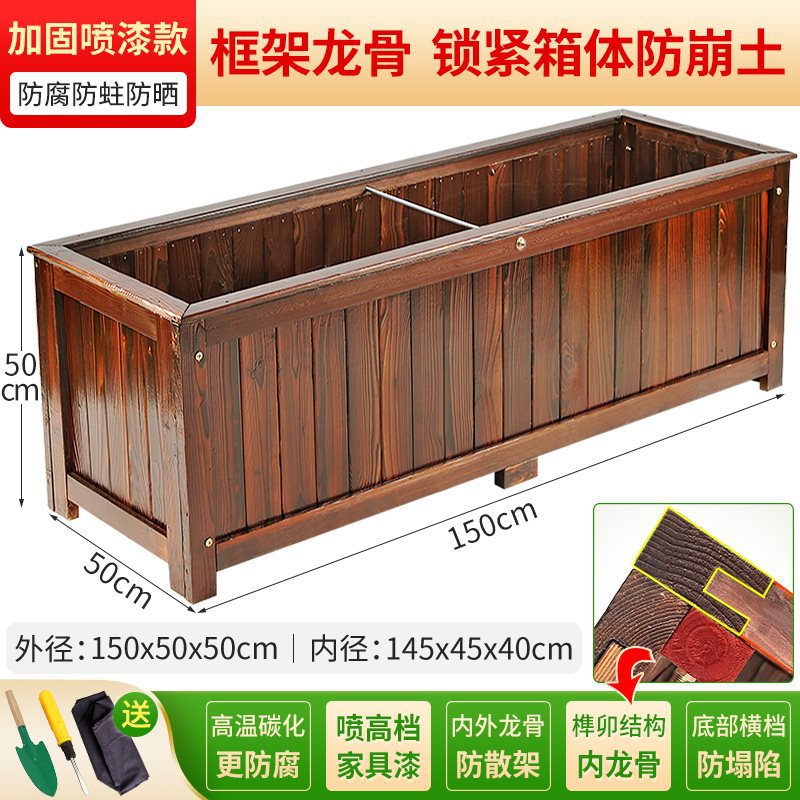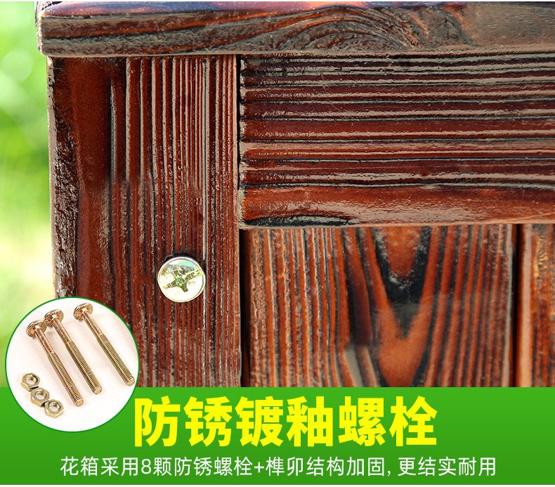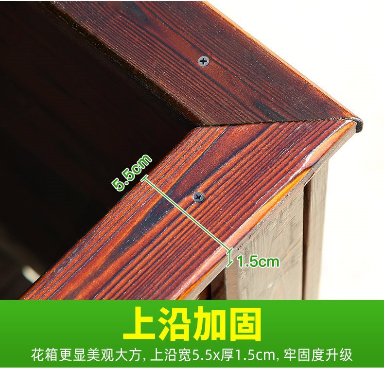 부식 방지 나무 꽃 상자 조합 야외 안뜰 탄화 단단한 나무 꽃 냄비 발코니 야채 냄비 대형 심기 상자 직사각형