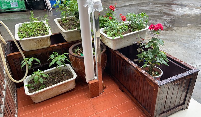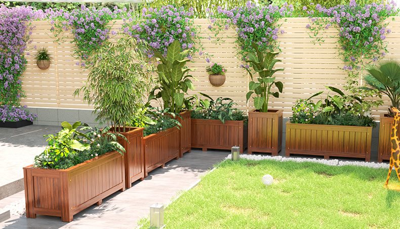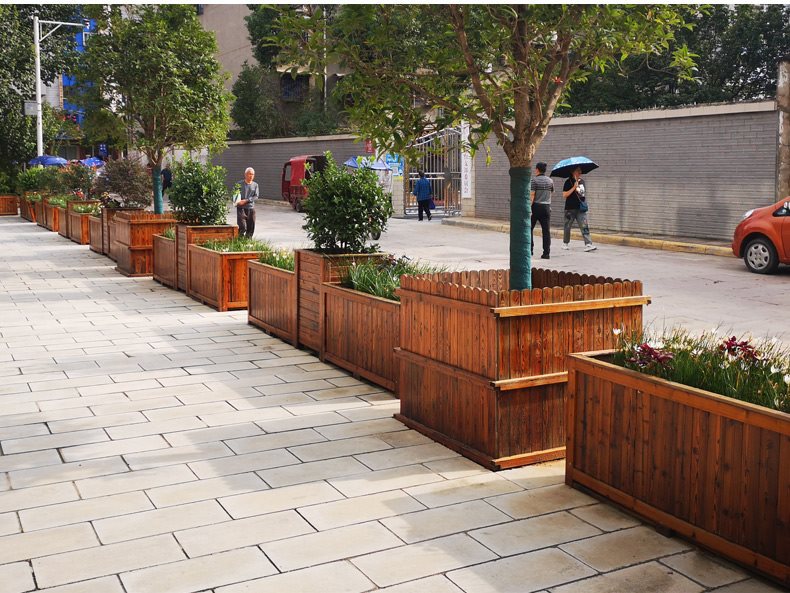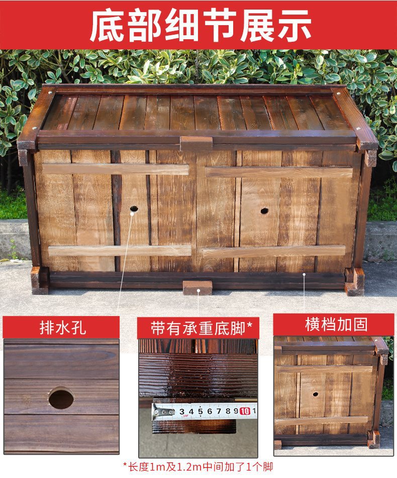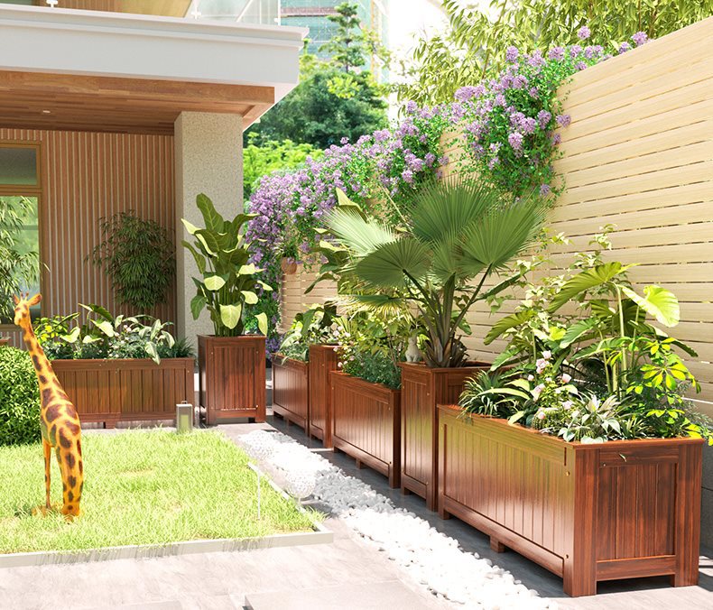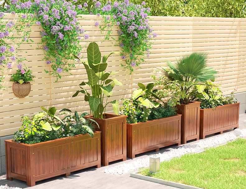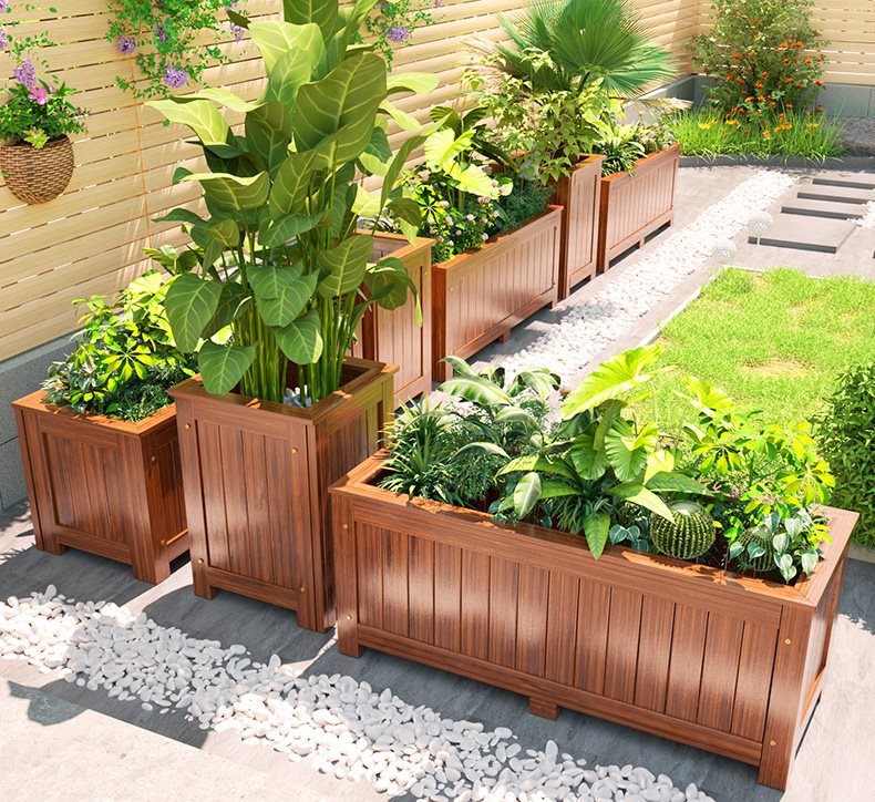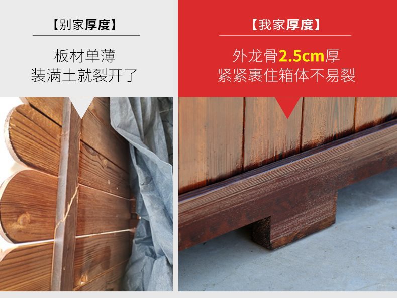부식 방지 나무 꽃 상자 조합 야외 안뜰 탄화 단단한 나무 꽃 냄비 발코니 야채 냄비 대형 심기 상자 직사각형