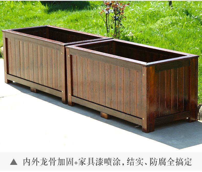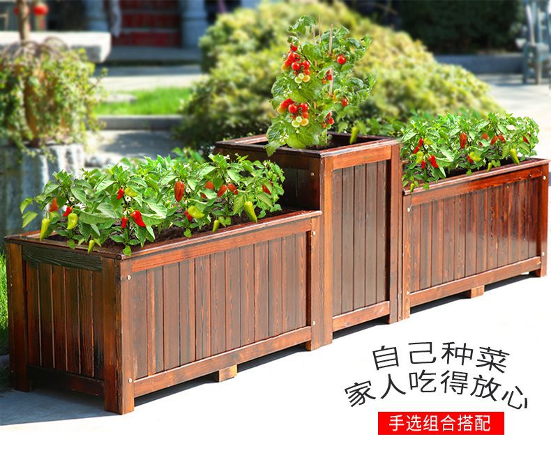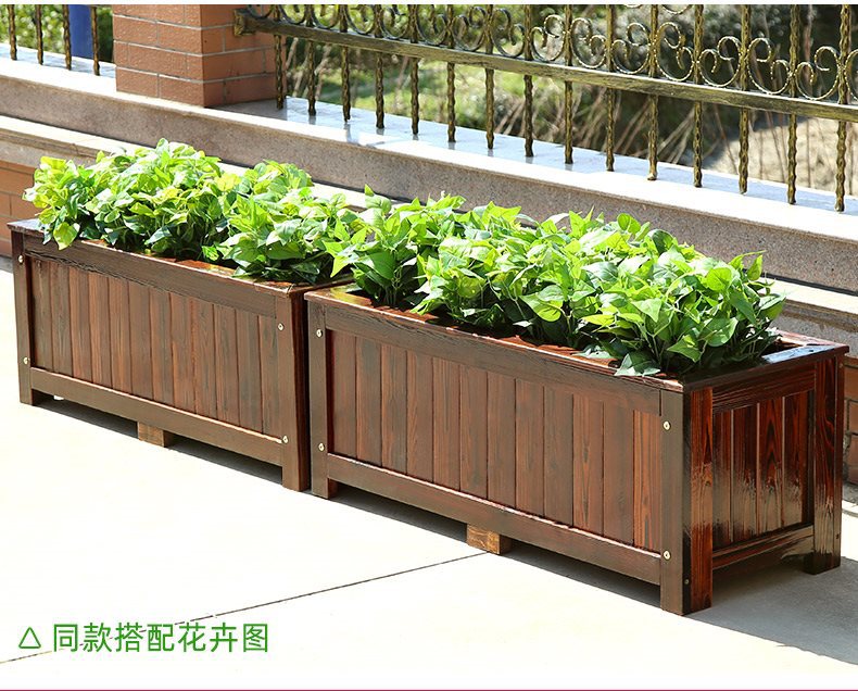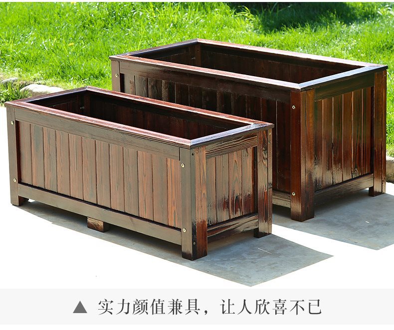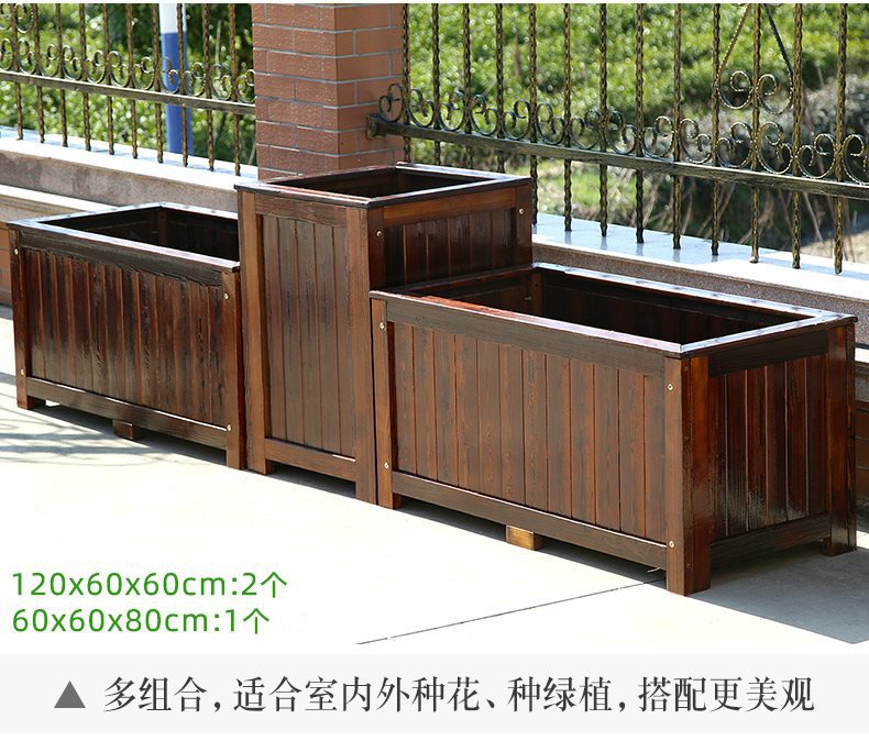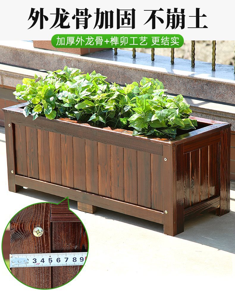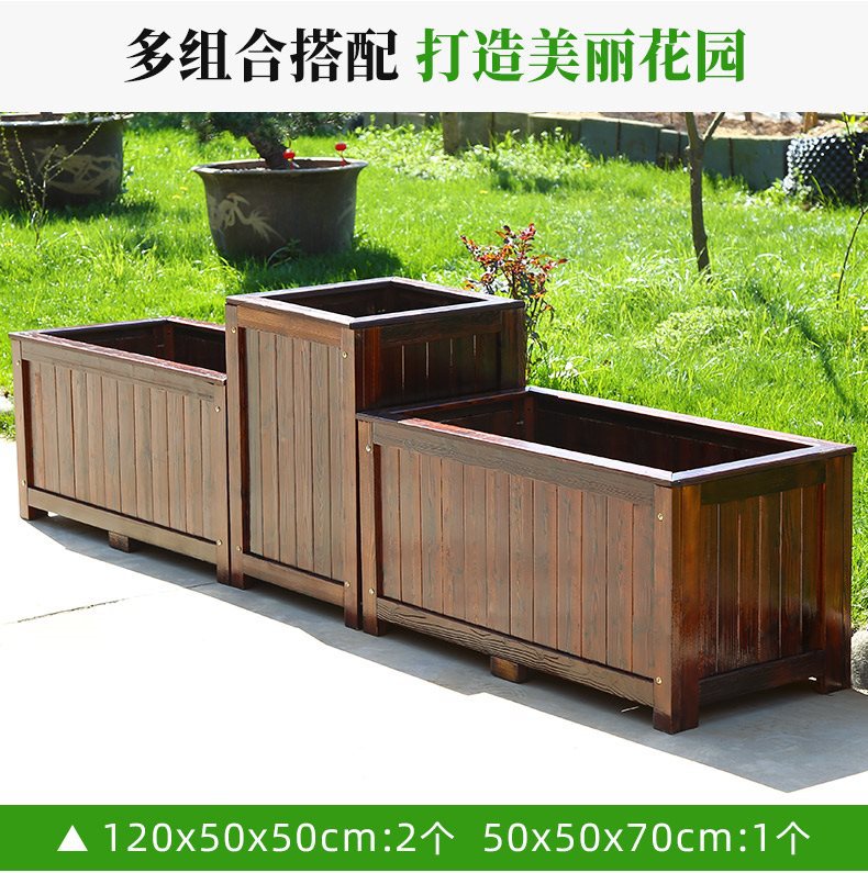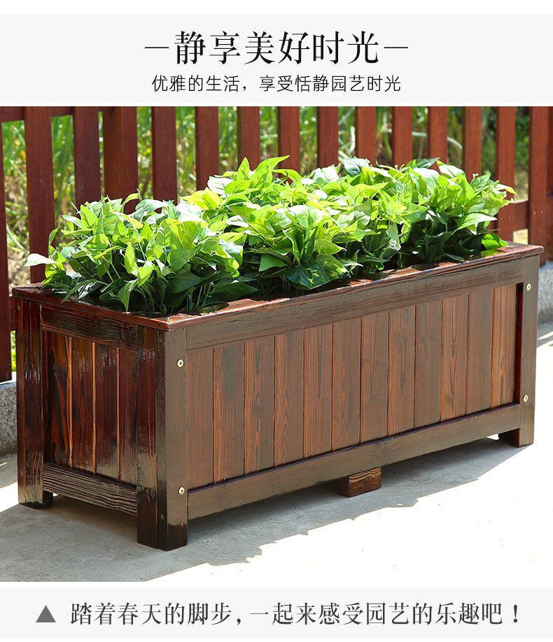 부식 방지 나무 꽃 상자 조합 야외 안뜰 탄화 단단한 나무 꽃 냄비 발코니 야채 냄비 대형 심기 상자 직사각형스토어 가기