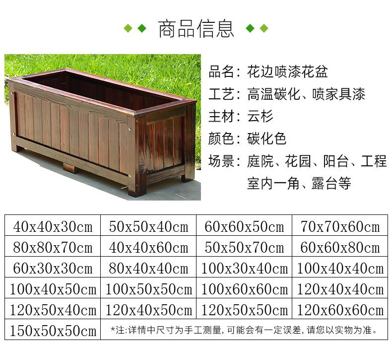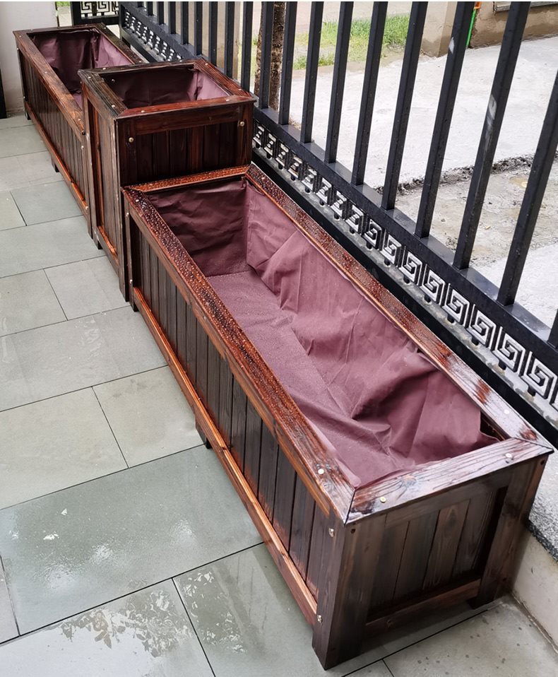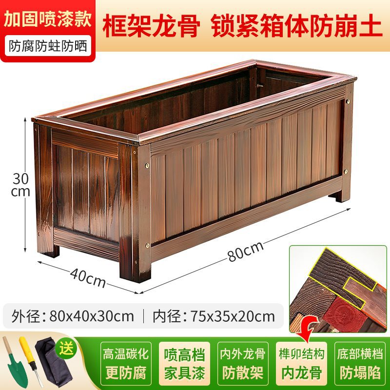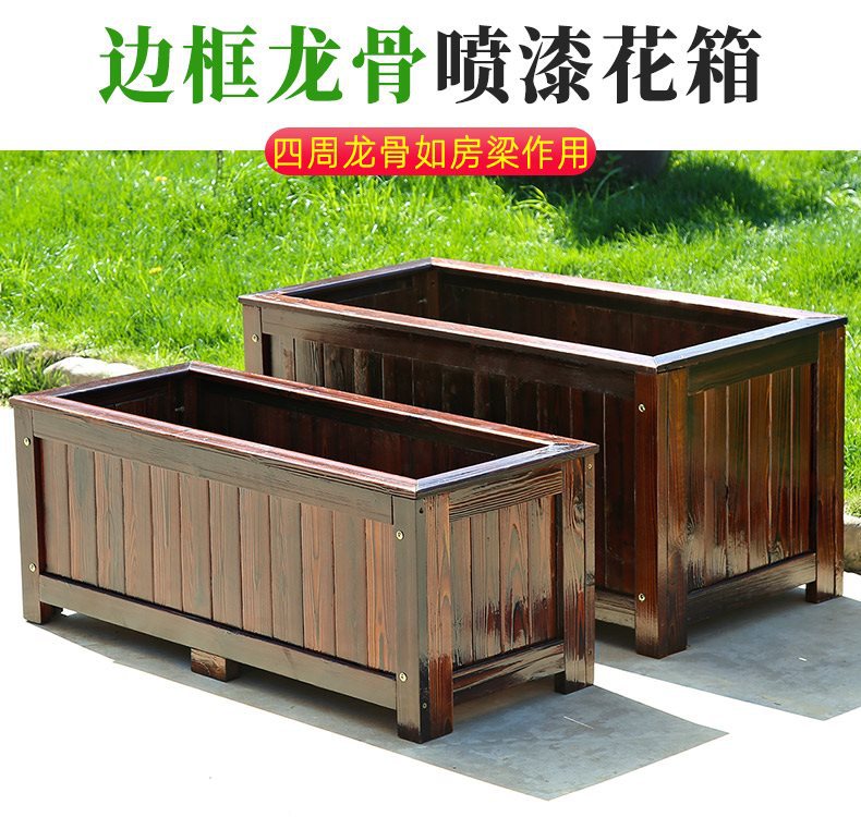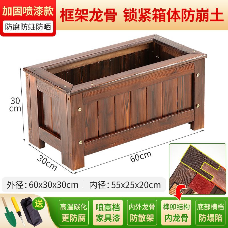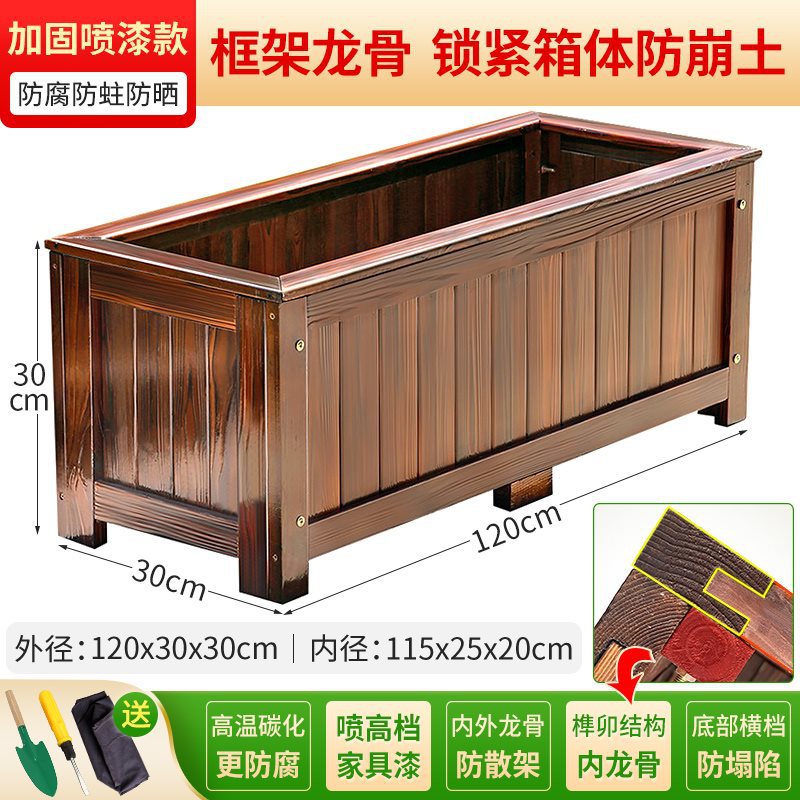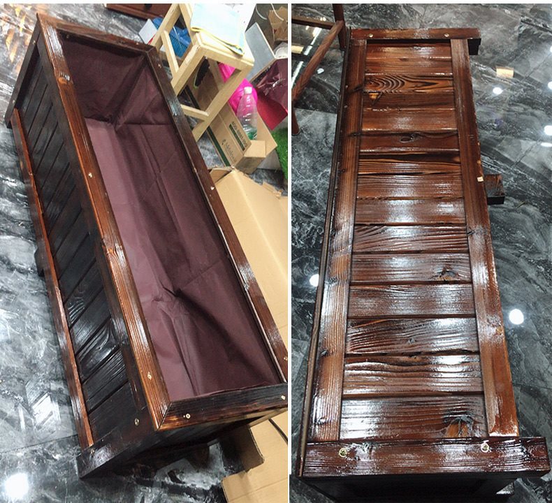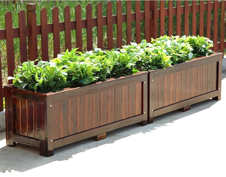 부식 방지 나무 꽃 상자 조합 야외 안뜰 탄화 단단한 나무 꽃 냄비 발코니 야채 냄비 대형 심기 상자 직사각형스토어 가기