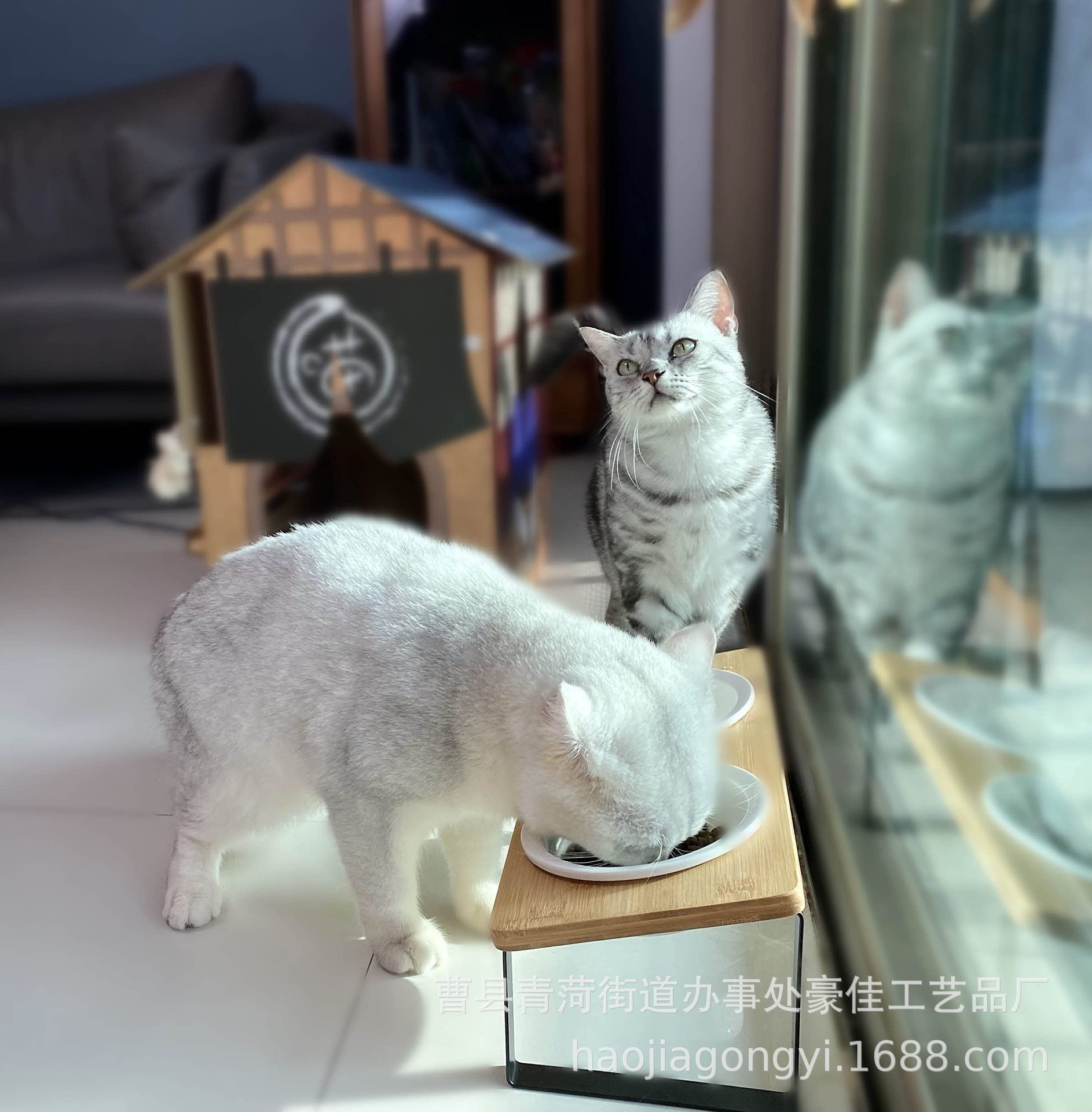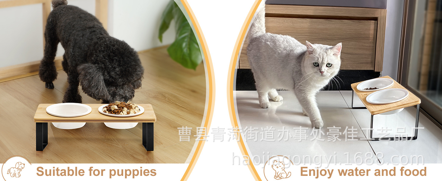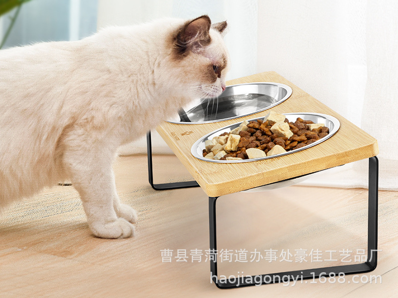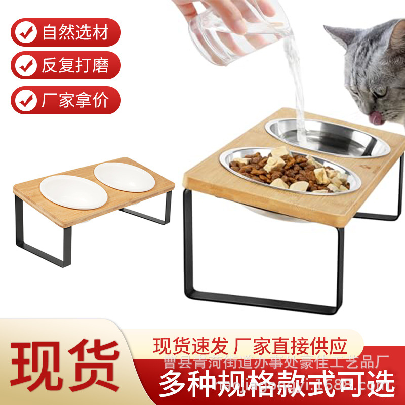 재고 대나무 고양이 그릇 랙 나무 고양이와 개 그릇 랙 더블 그릇 냄비 랙 대나무 애완 동물 식기 애완 동물 식탁 도매스토어 가기
