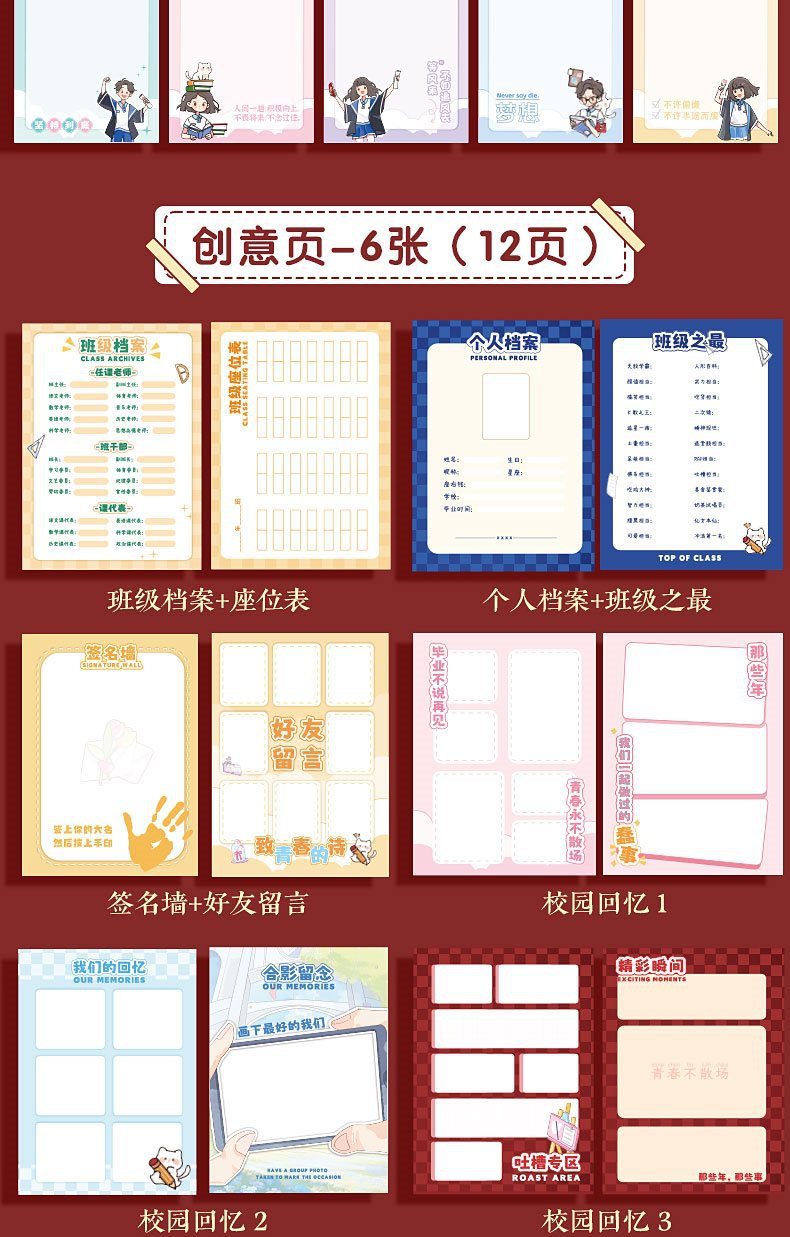 동급생 기록 학생 6 학년 졸업 기념 책 2024 새로운 높은 색 가치 소녀 감각 느슨한 잎 성장 매뉴얼