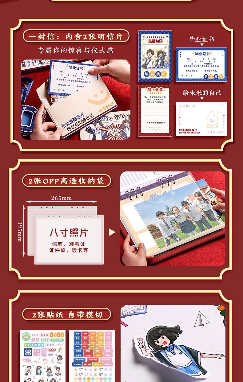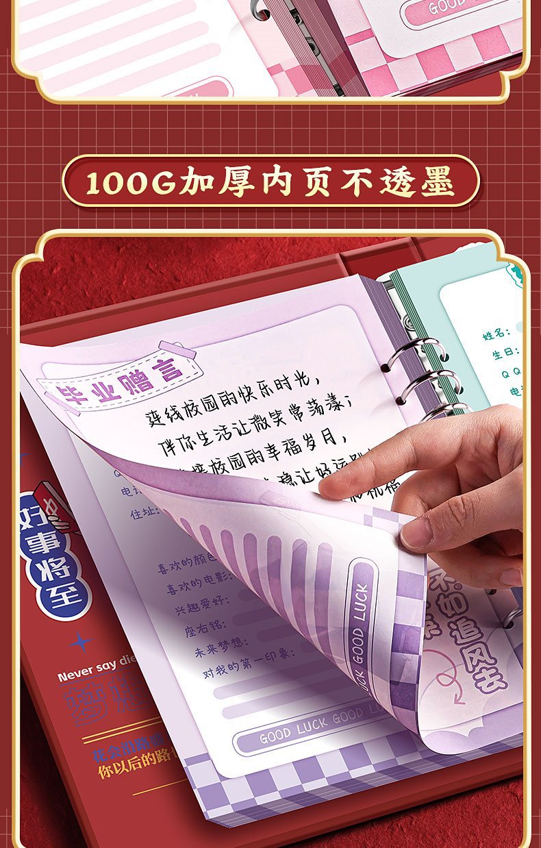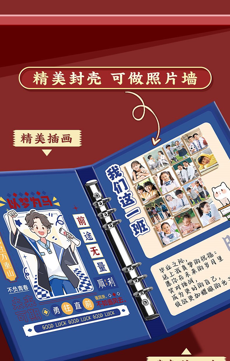 동급생 기록 학생 6 학년 졸업 기념 책 2024 새로운 높은 색 가치 소녀 감각 느슨한 잎 성장 매뉴얼스토어 가기