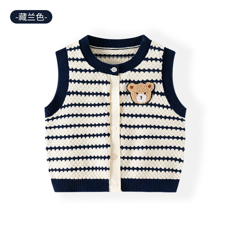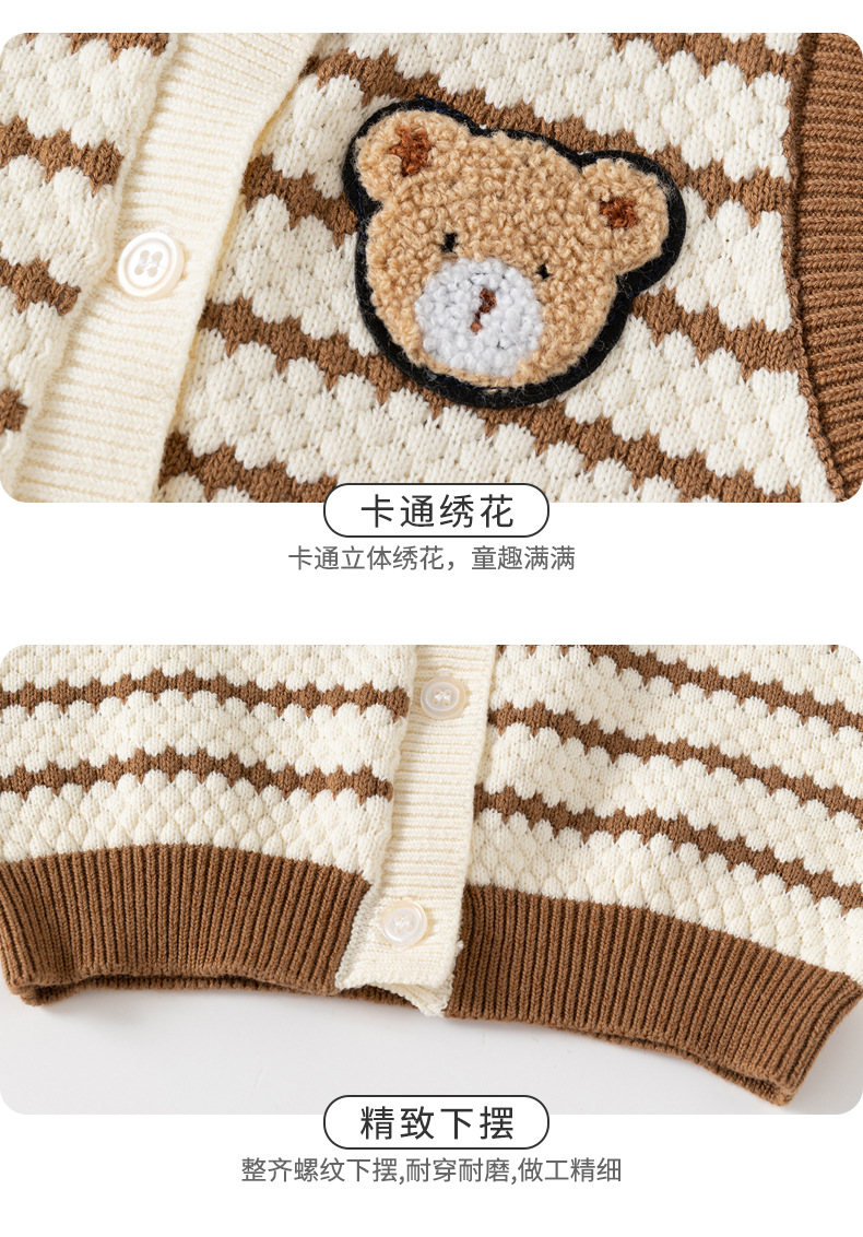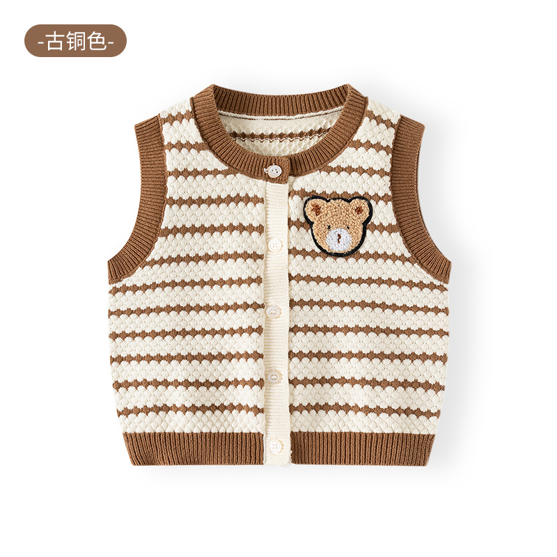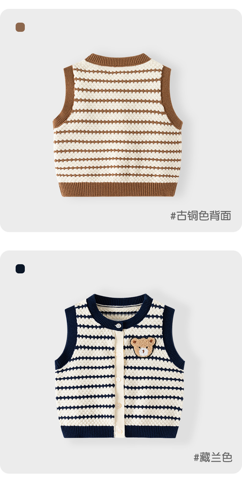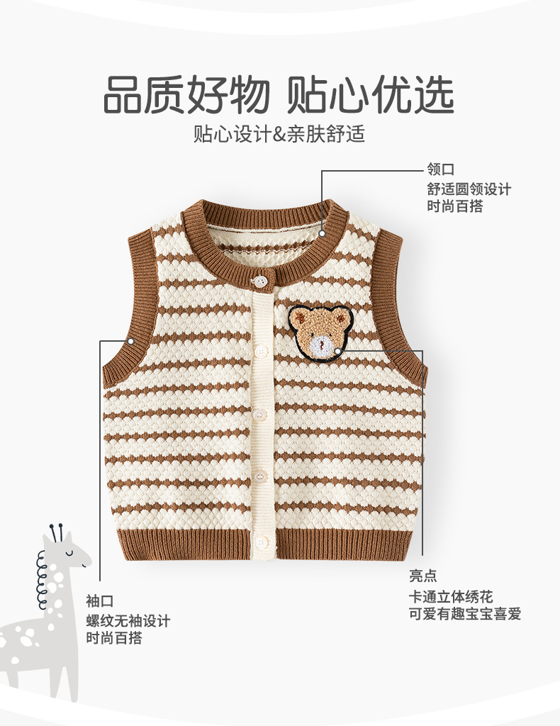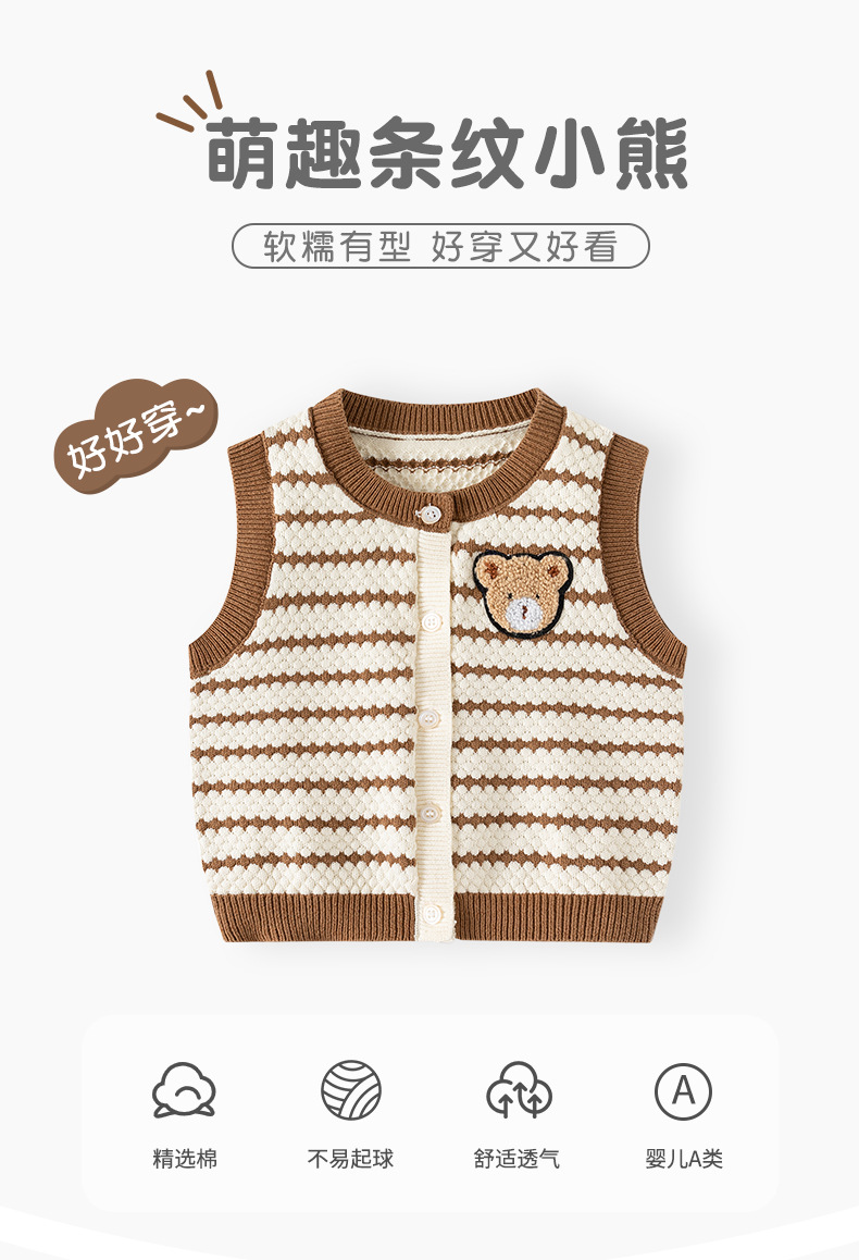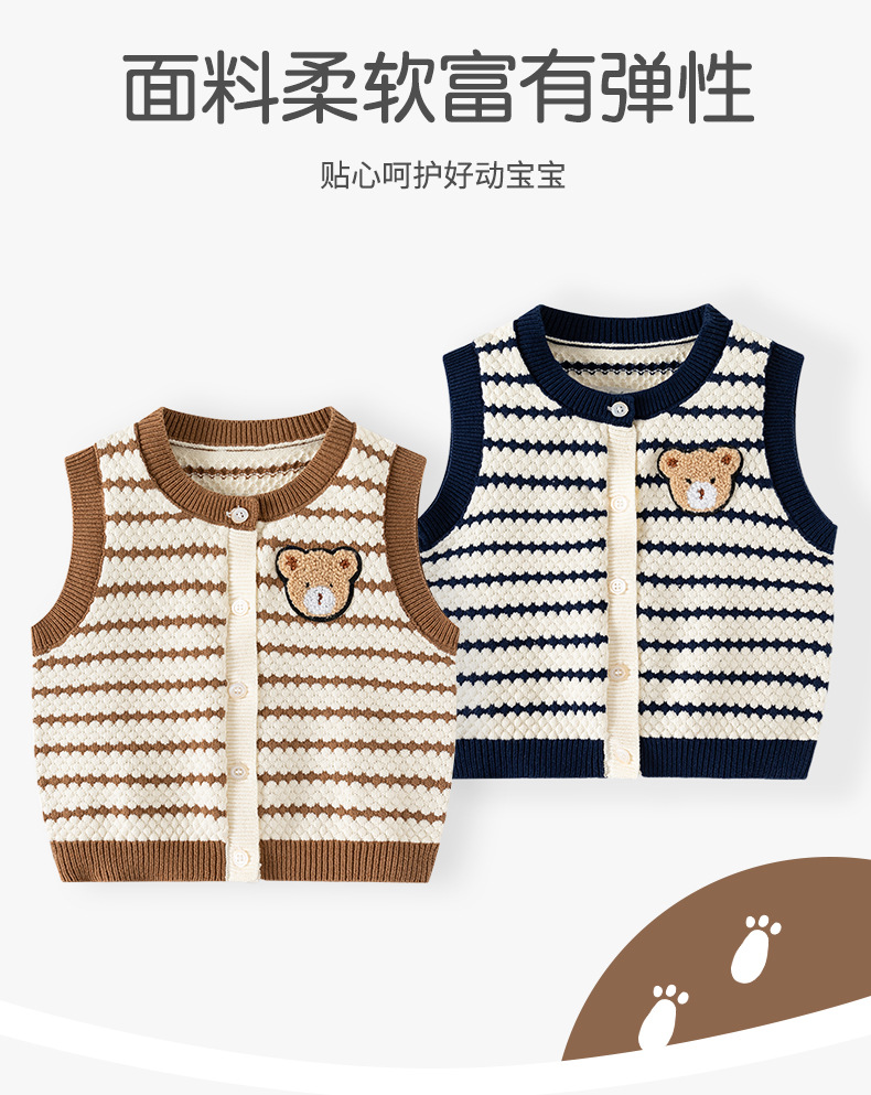 줄무늬 곰 한국 스타일 어린이 조끼 카디건 가을 클래스 유행 소년 조끼 니트 아기 조끼