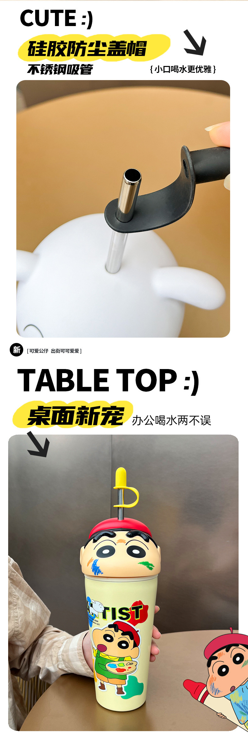 정품 크레용 신-새로운 보온병 컵 걸의 고 가치 밀짚 컵 오피스 테이블 컵 대용량 아이스 불리 컵