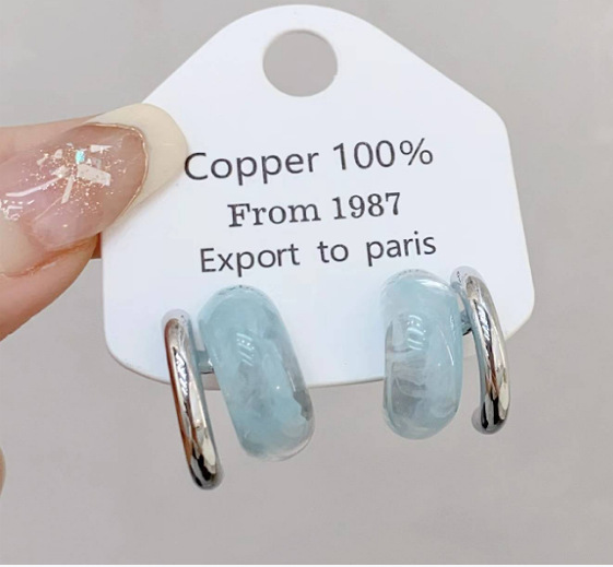 얼음 추출물 블루 ~ 얼음 침투 프랑스 수지 C 귀걸이 여성 틈새 달콤한 귀걸이 고급 귀걸이