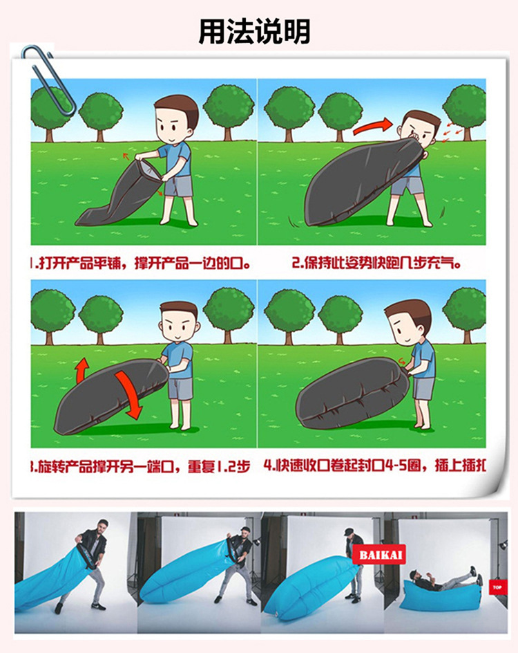 야외 인터넷 인기있는 게으른 사람들 팽창식 소파 공기 매트리스 싱글 레코더 휴대용 캠핑 점심 휴식 음악 축제 소파스토어 가기