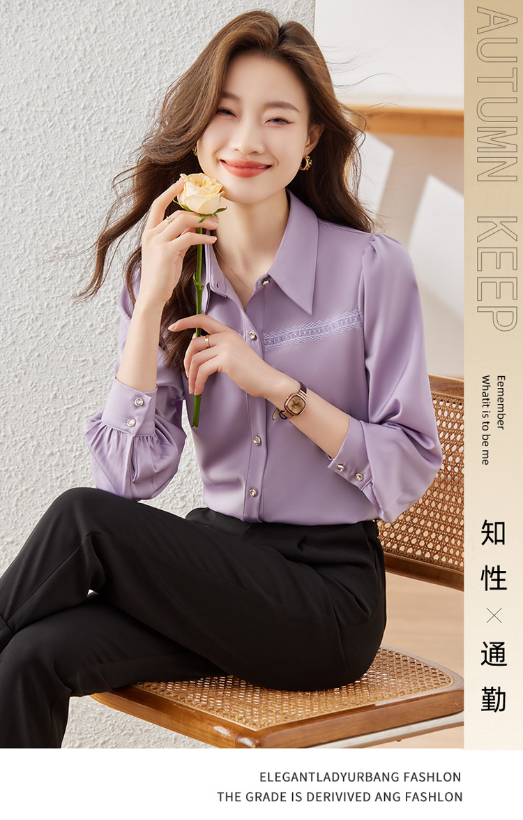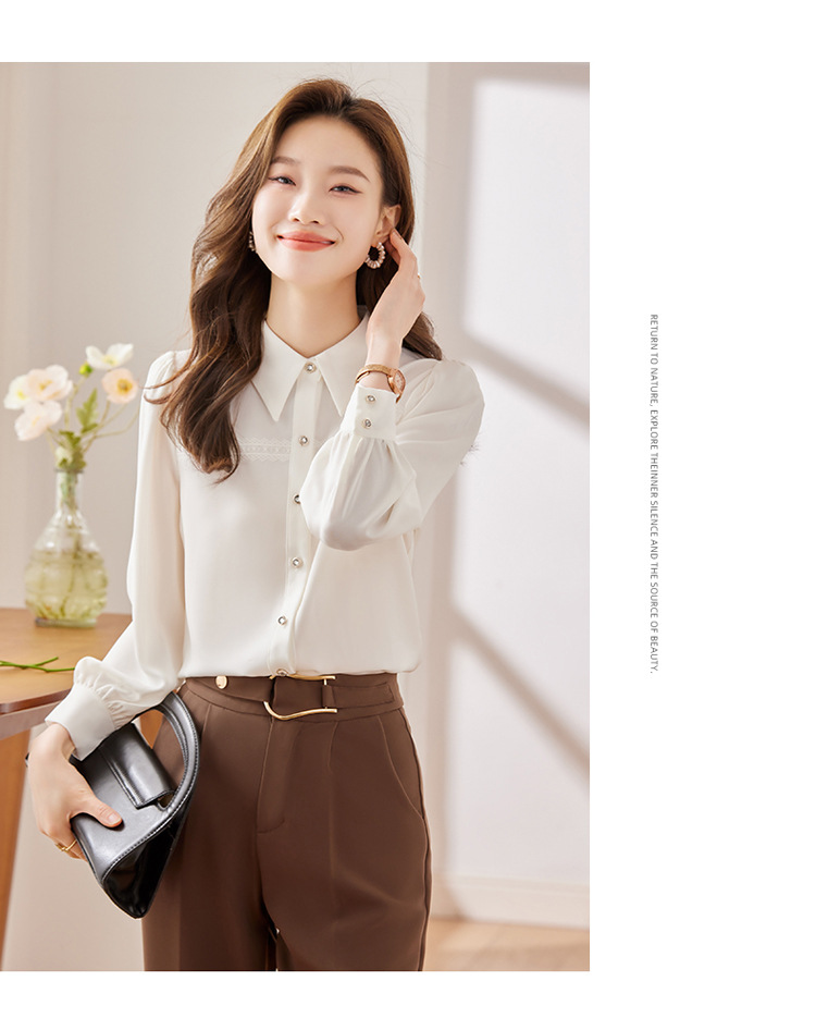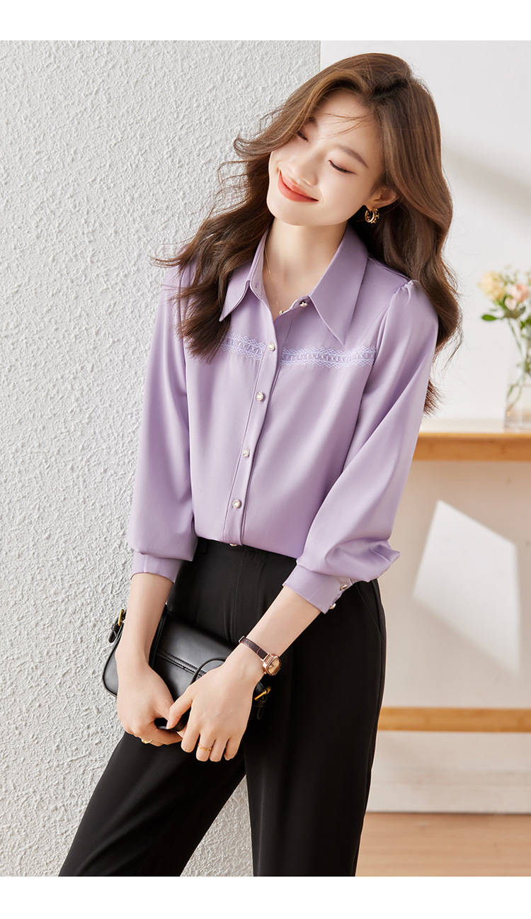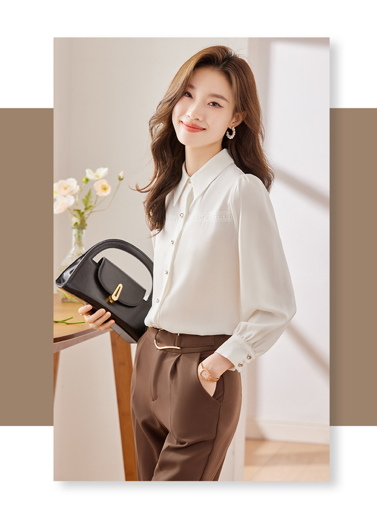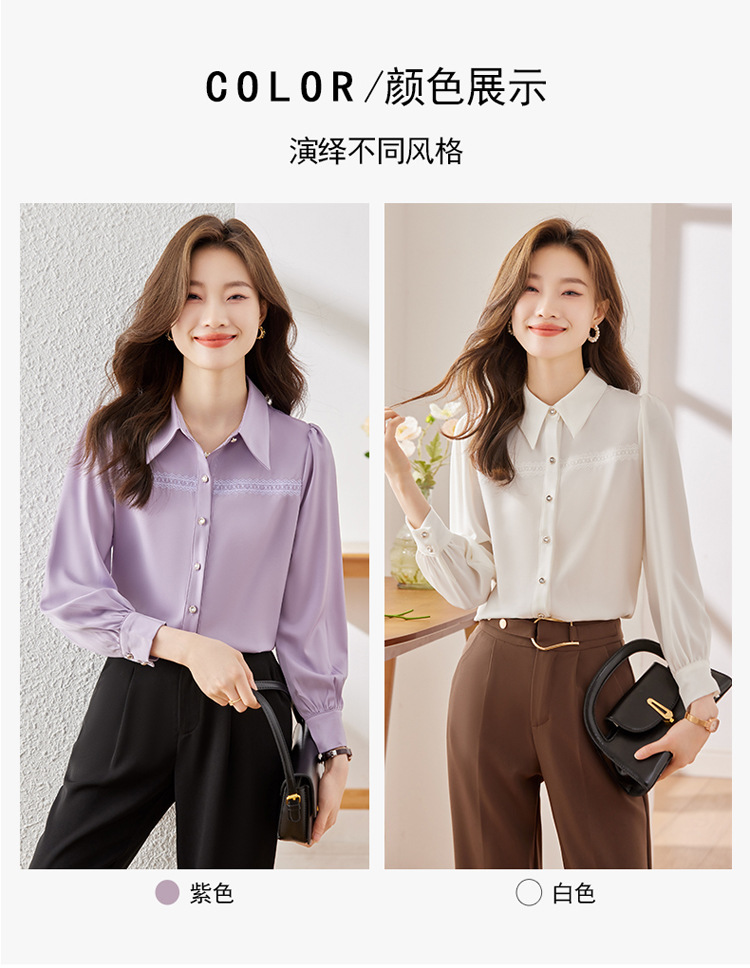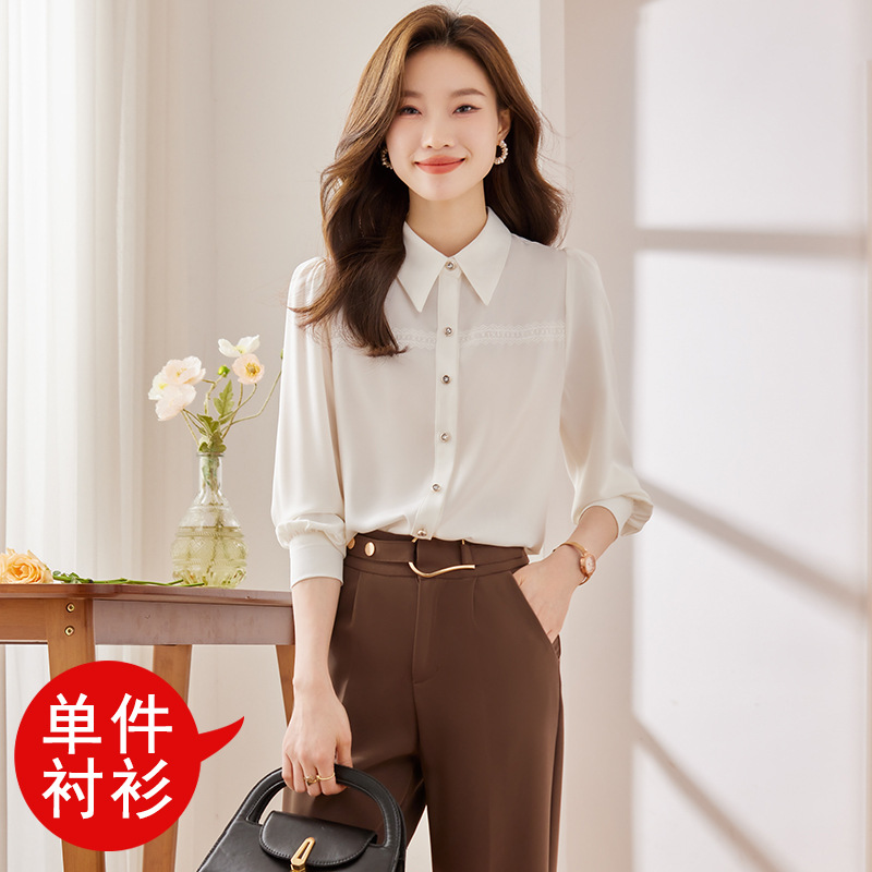 새틴 셔츠 여성의 가을 2024 새로운 하이 엔드 우아한 여신 스타일 패션 웨스턴 디자인 레이스 V 넥 셔츠스토어 가기