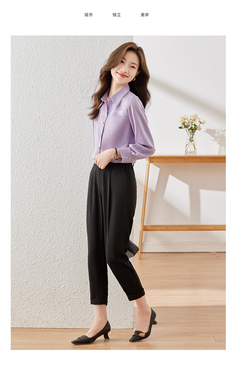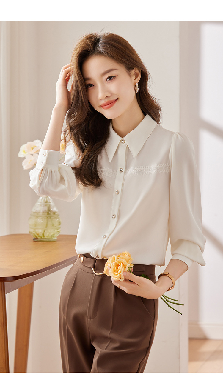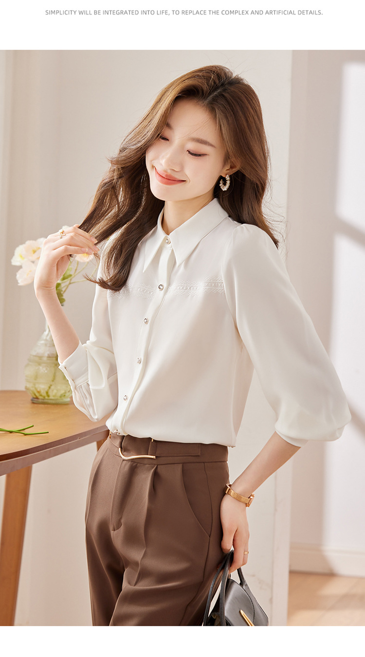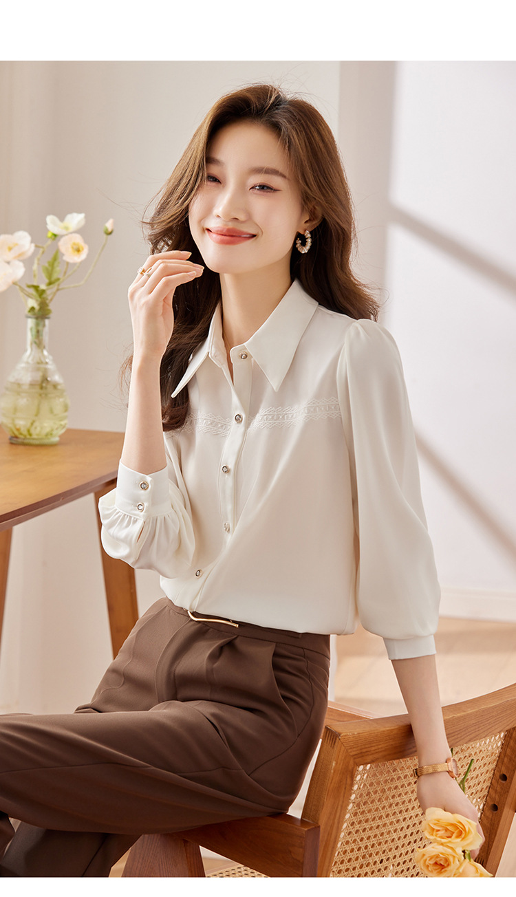 새틴 셔츠 여성의 가을 2024 새로운 하이 엔드 우아한 여신 스타일 패션 웨스턴 디자인 레이스 V 넥 셔츠스토어 가기