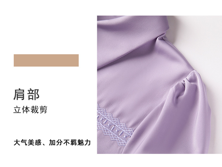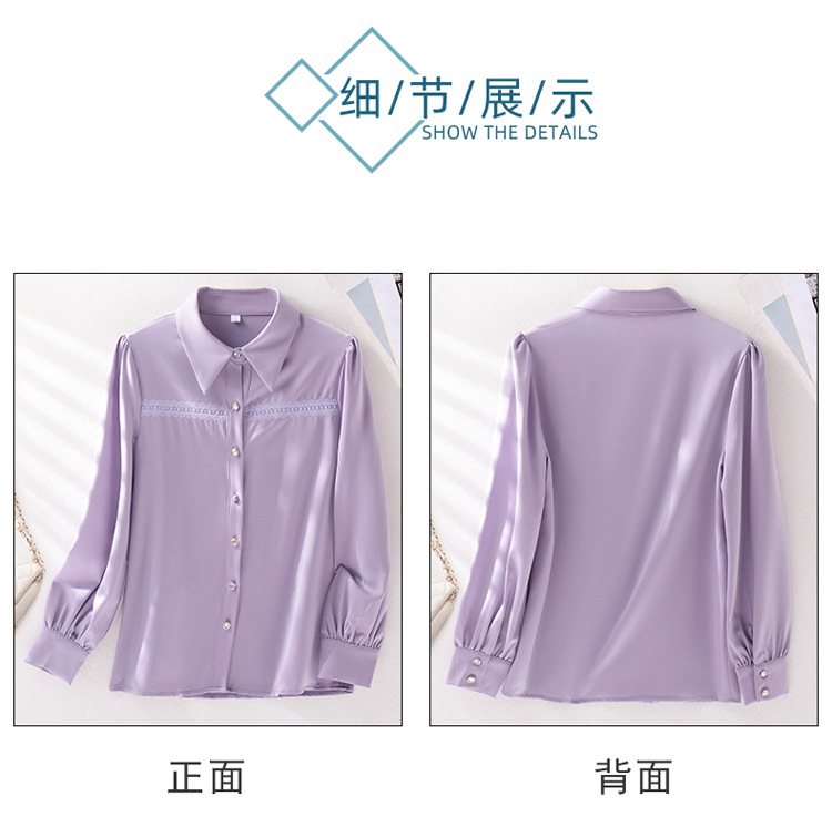 새틴 셔츠 여성의 가을 2024 새로운 하이 엔드 우아한 여신 스타일 패션 웨스턴 디자인 레이스 V 넥 셔츠