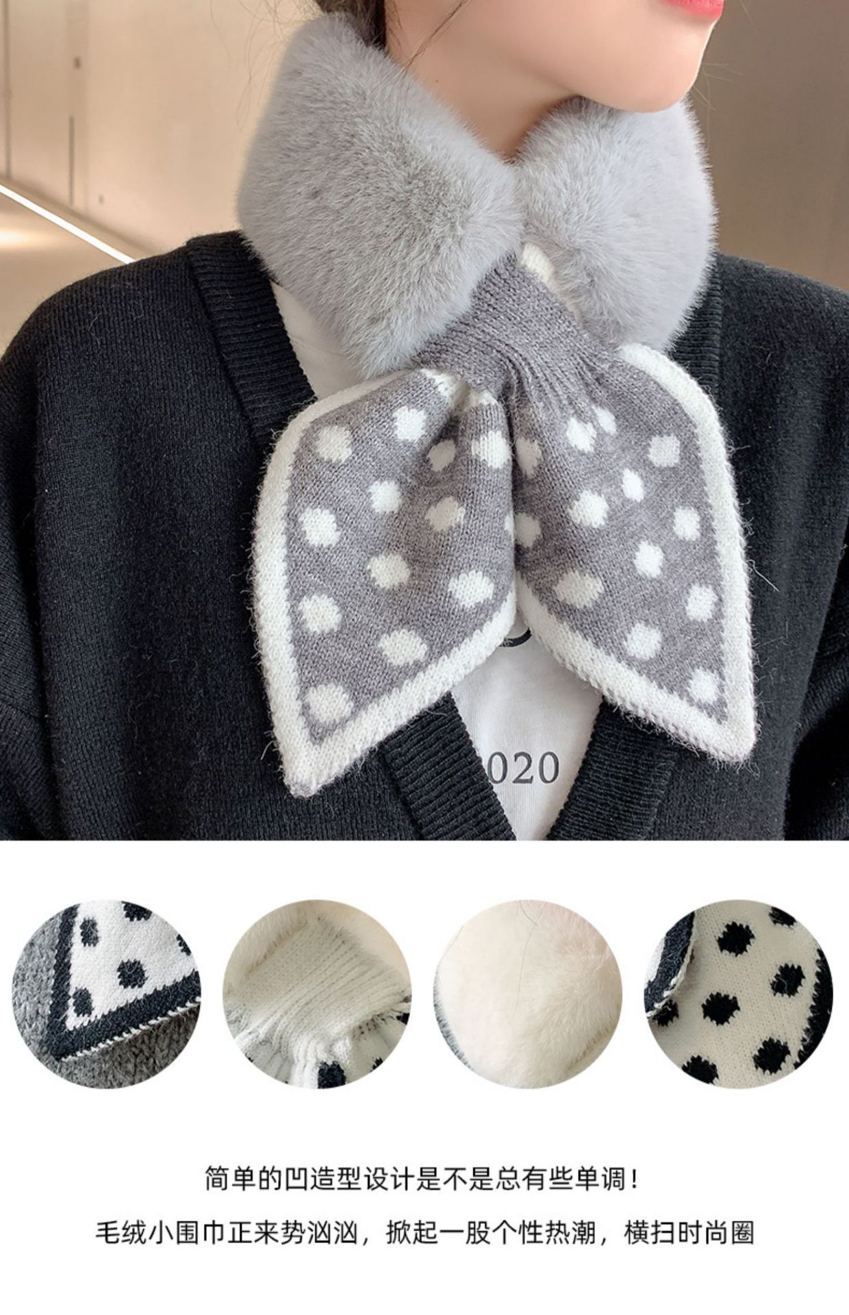 가을과 겨울 한국 스타일 따뜻한 두꺼운 스카프 새로운 여성 모방 렉스 토끼 모피 도트 플러시 크로스 넥 보호 스카프스토어 가기