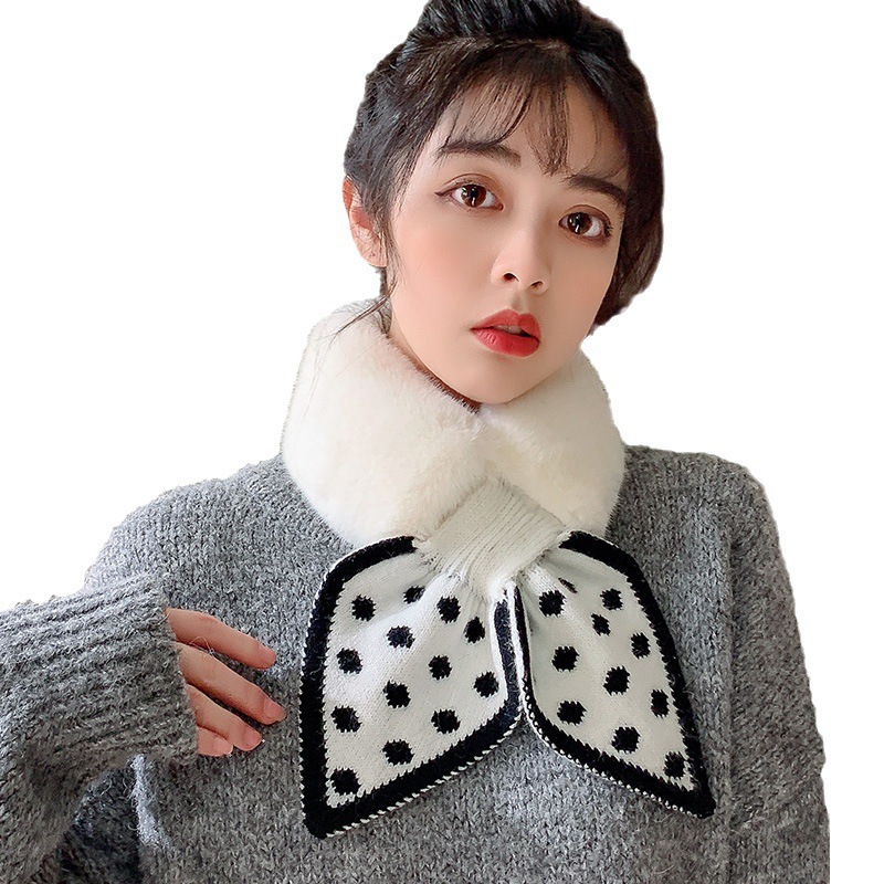 가을과 겨울 한국 스타일 따뜻한 두꺼운 스카프 새로운 여성 모방 렉스 토끼 모피 도트 플러시 크로스 넥 보호 스카프