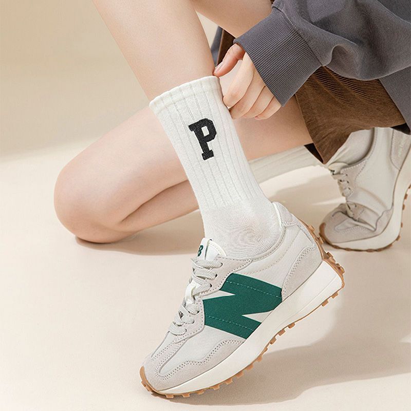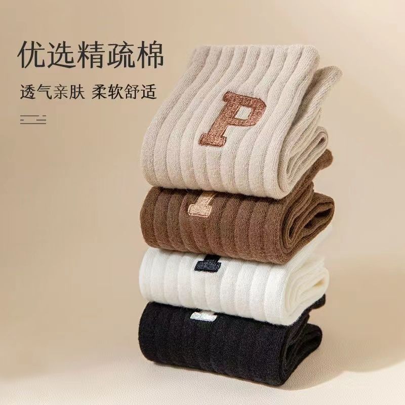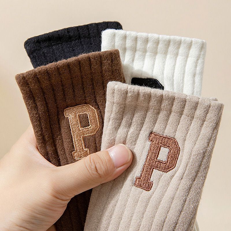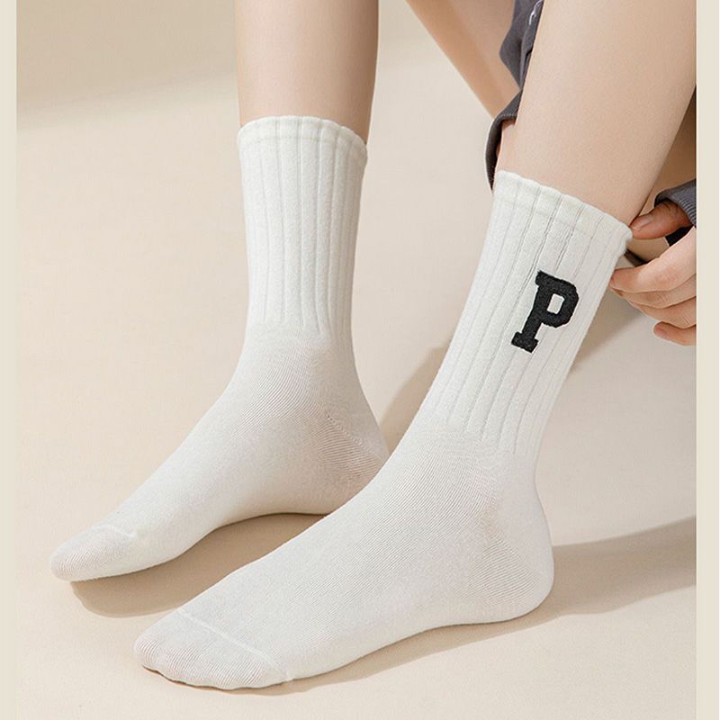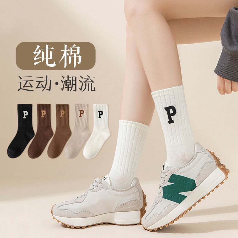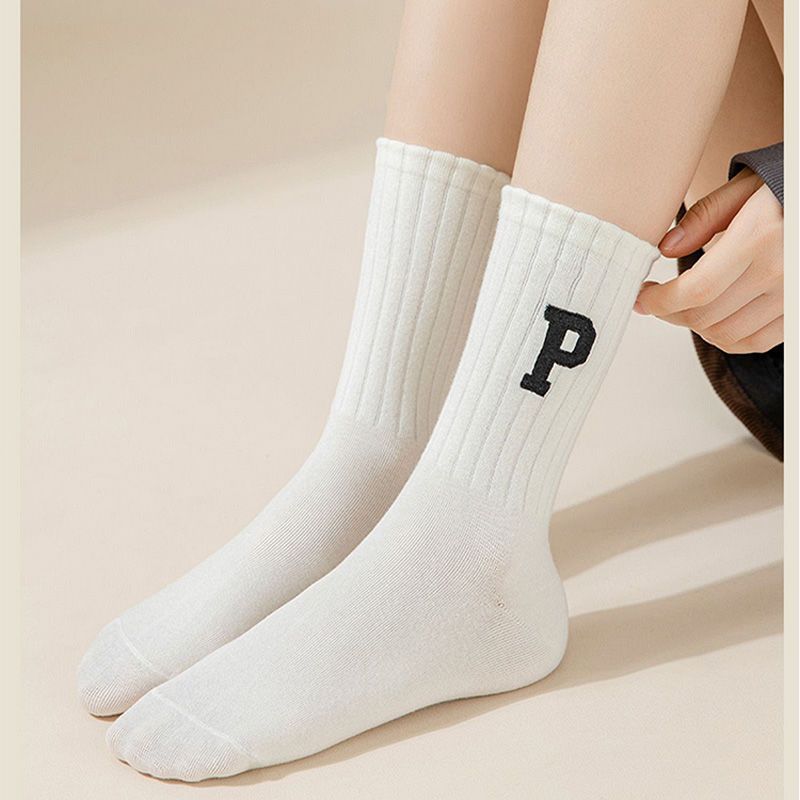 P 편지 가을과 겨울 새로운 유행 외부 착용 중간 길이 양말 스태킹 양말 여자의 높은 길이 스포츠 스타킹 주지 양말스토어 가기