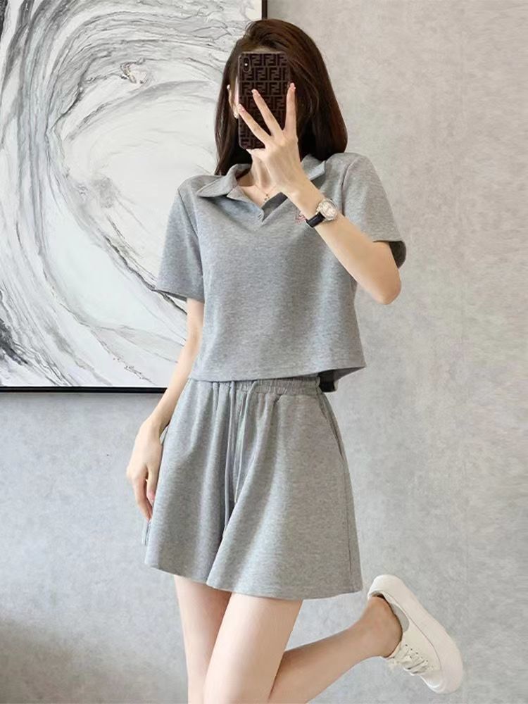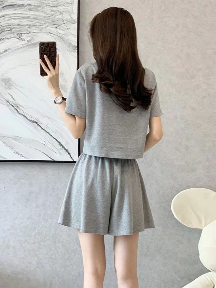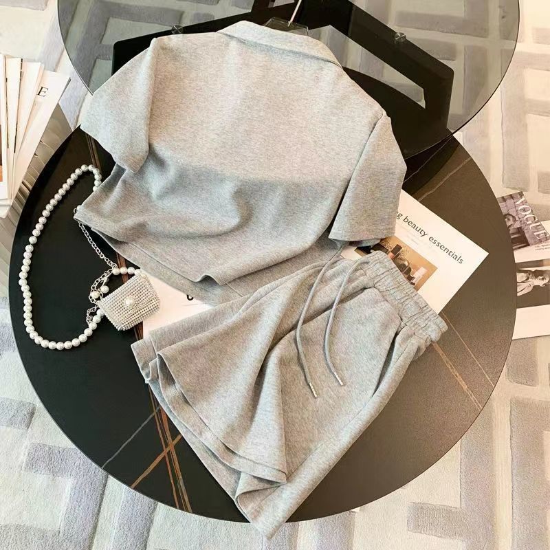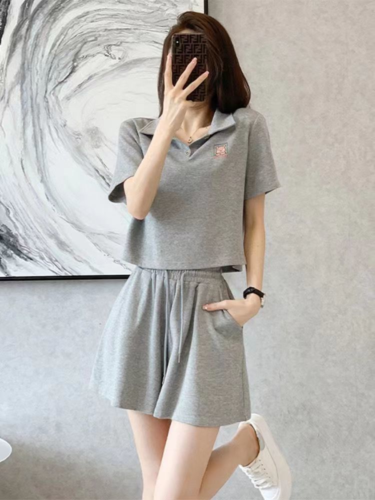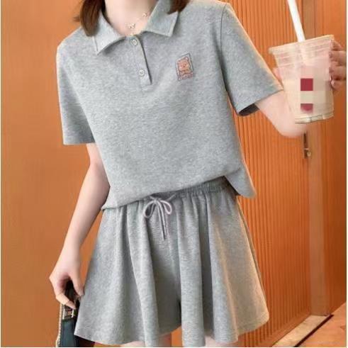 여름 2024 여성 신형 여성 스포츠웨어 반바지 세트 작은 플러스 사이즈 캐주얼 얇은 투피스 세트스토어 가기