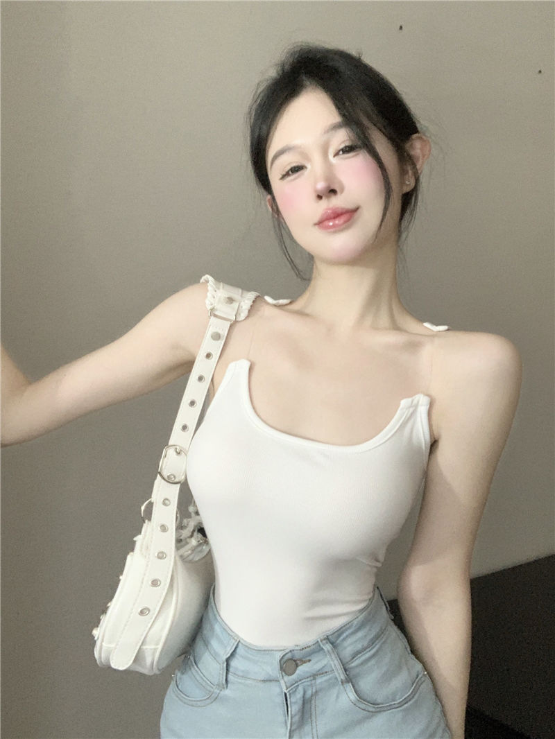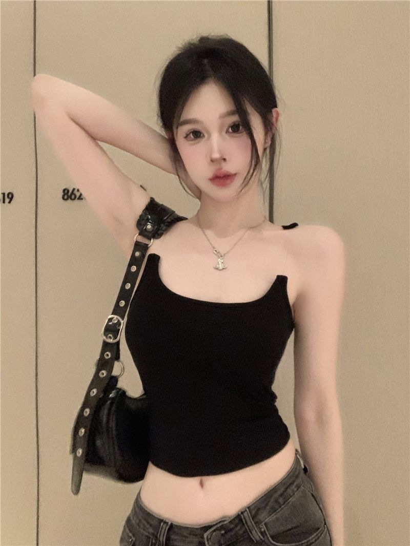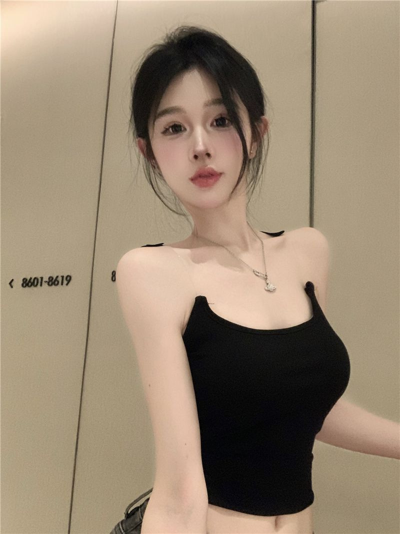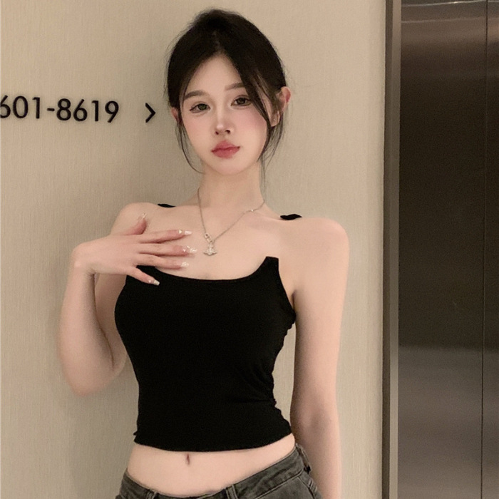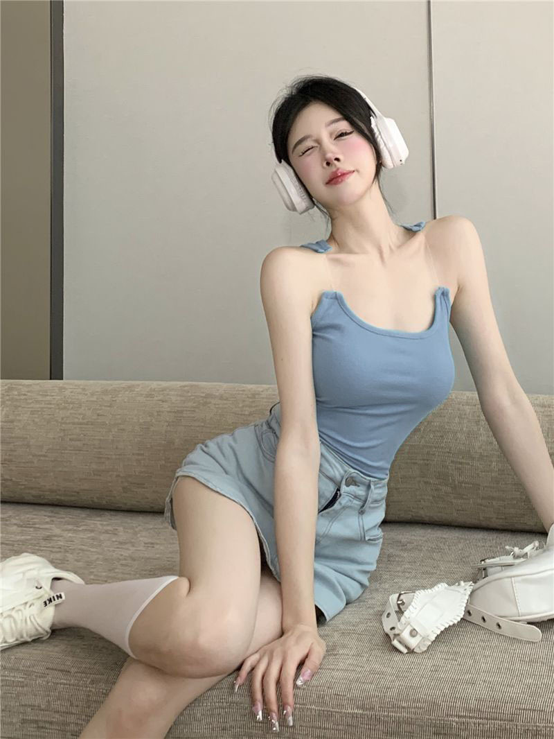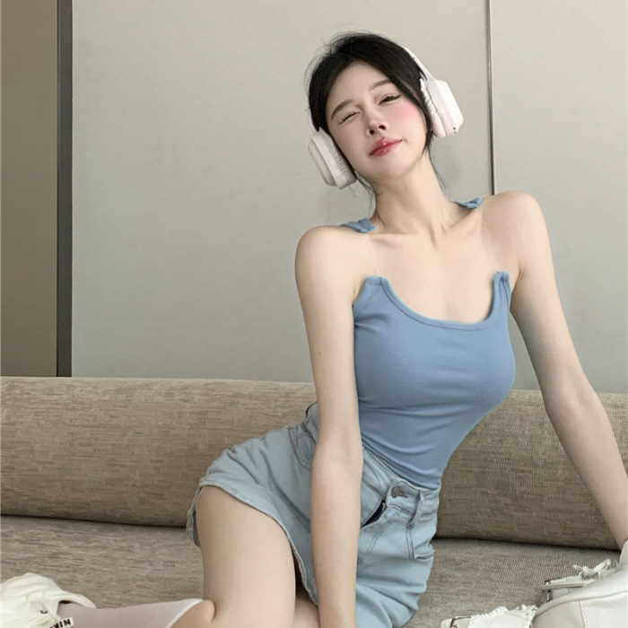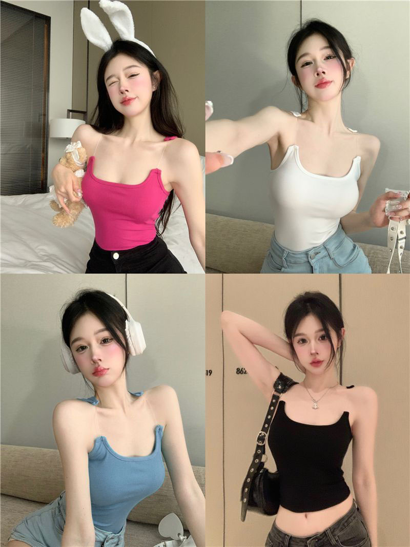 보이지 않는 어깨끈 캐미솔 여성 여름 아우터웨어 순수하고 섹시한 스타일 달콤하고 매력적인 신상 단색 짧은 탑스토어 가기