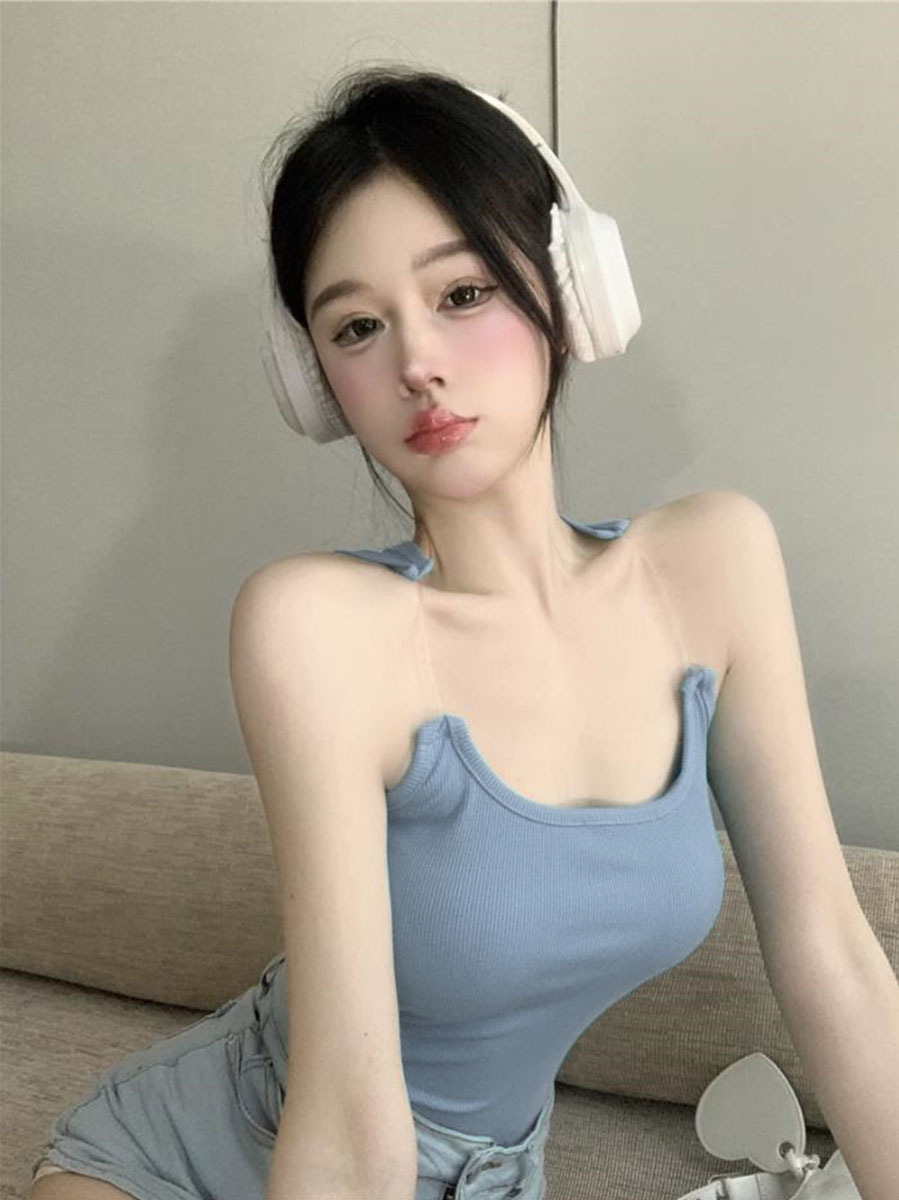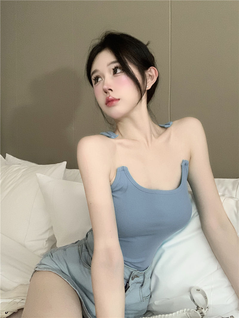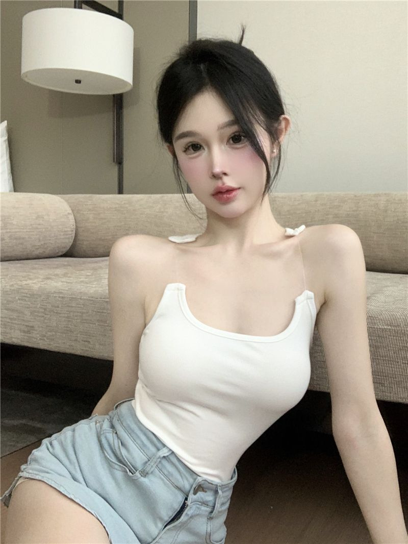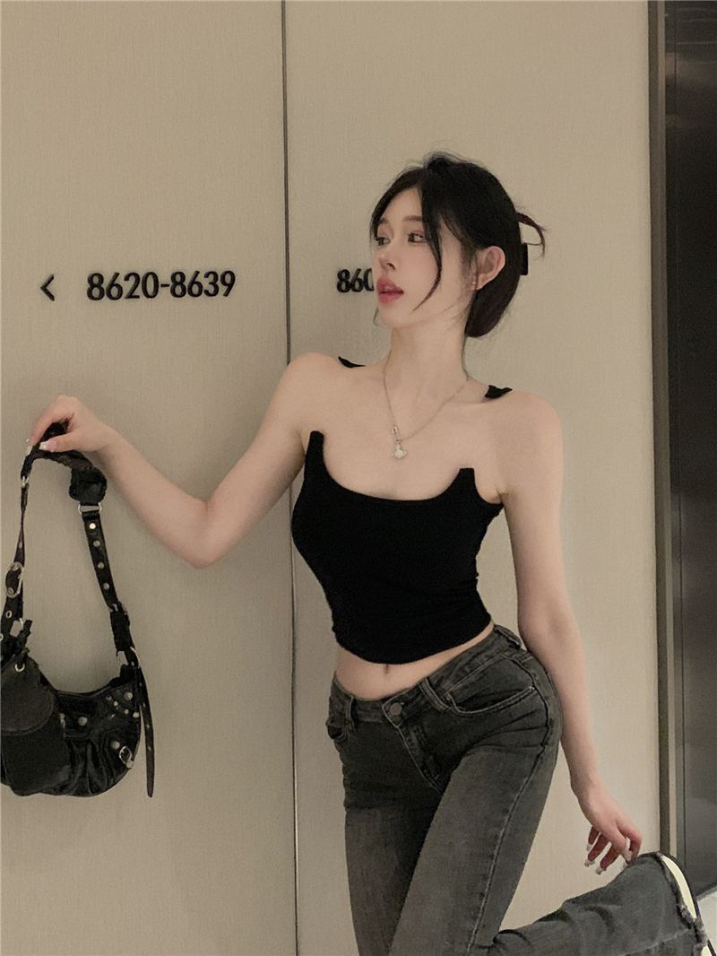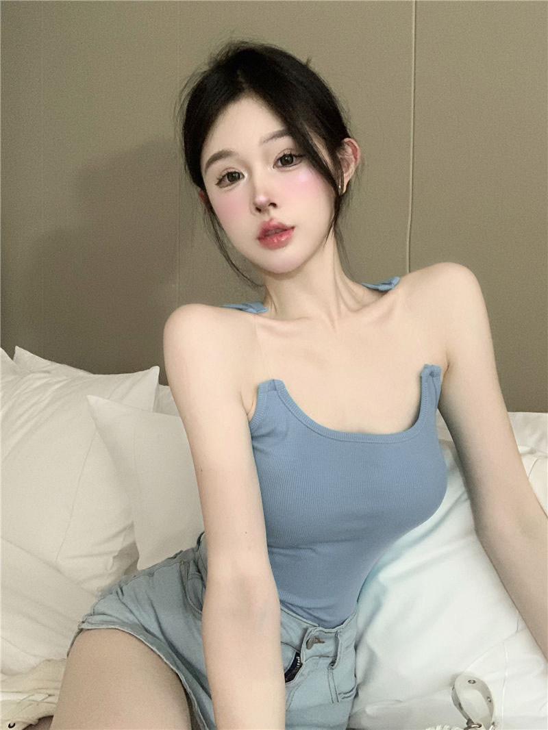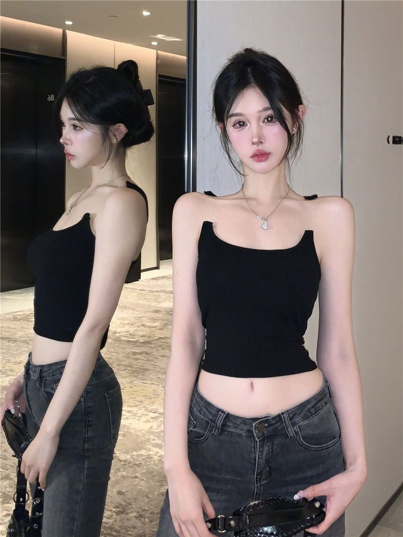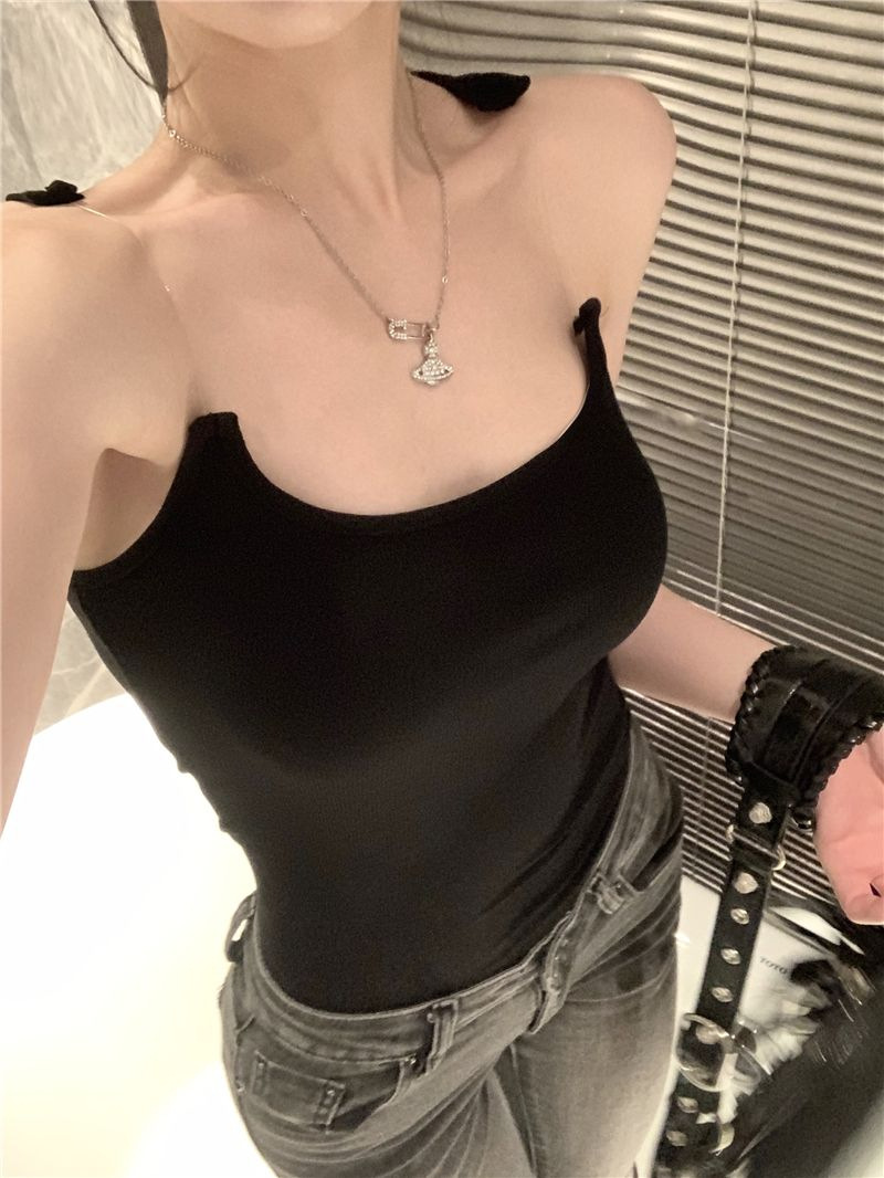 보이지 않는 어깨끈 캐미솔 여성 여름 아우터웨어 순수하고 섹시한 스타일 달콤하고 매력적인 신상 단색 짧은 탑스토어 가기