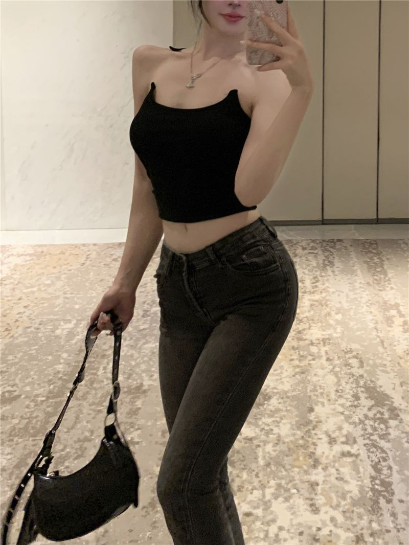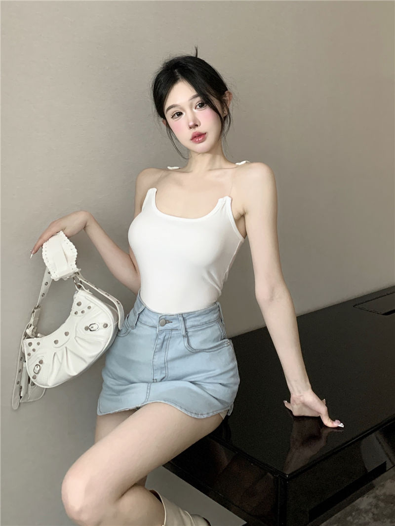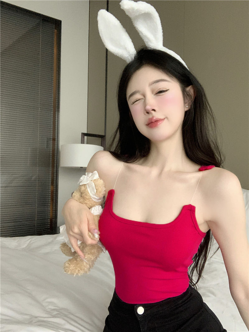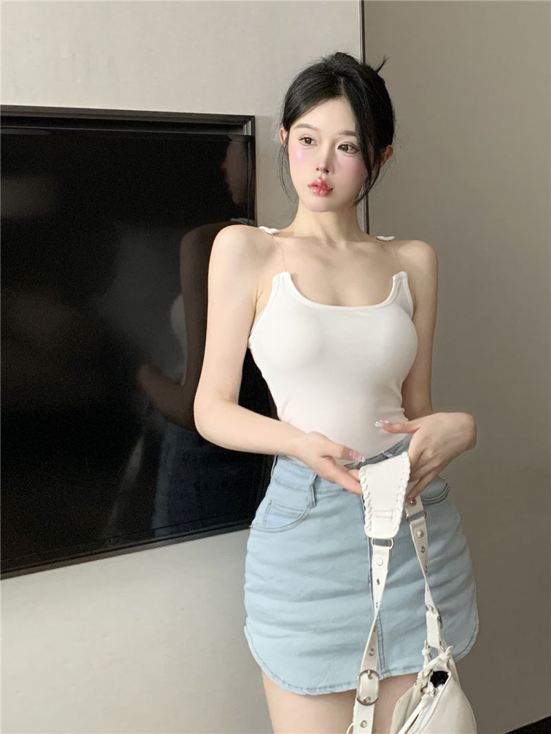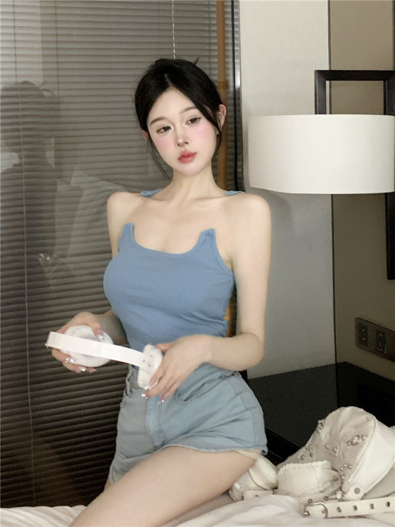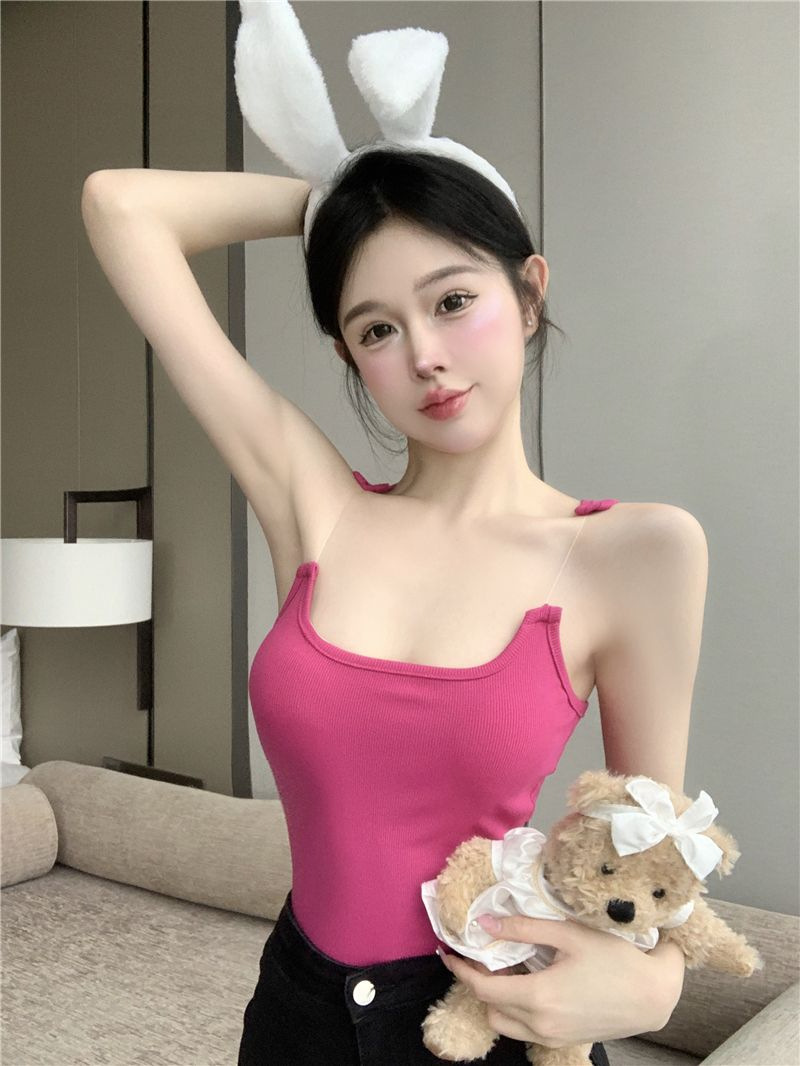 보이지 않는 어깨끈 캐미솔 여성 여름 아우터웨어 순수하고 섹시한 스타일 달콤하고 매력적인 신상 단색 짧은 탑스토어 가기