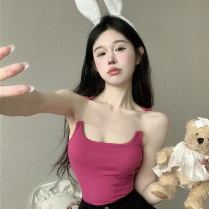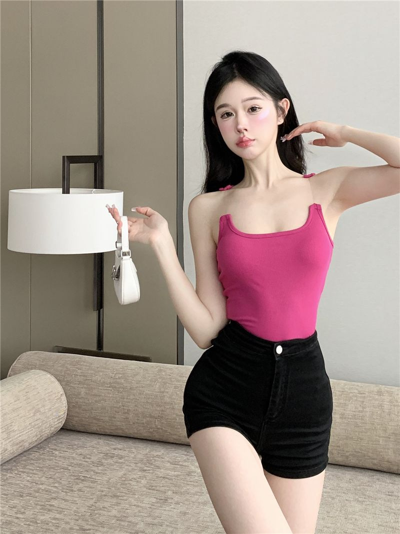 보이지 않는 어깨끈 캐미솔 여성 여름 아우터웨어 순수하고 섹시한 스타일 달콤하고 매력적인 신상 단색 짧은 탑