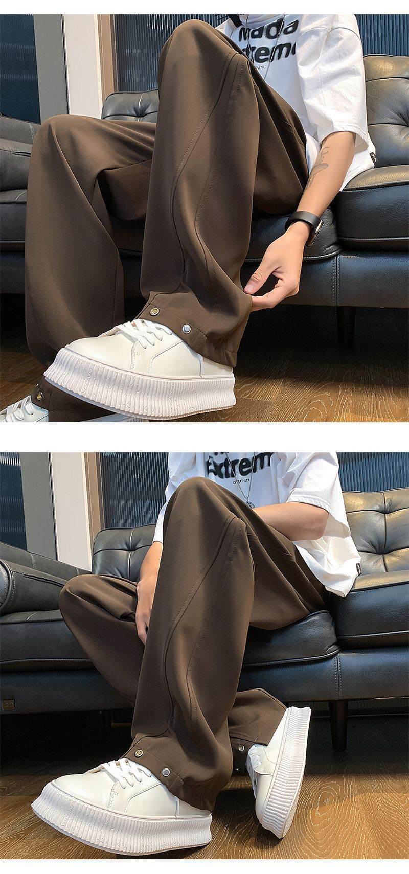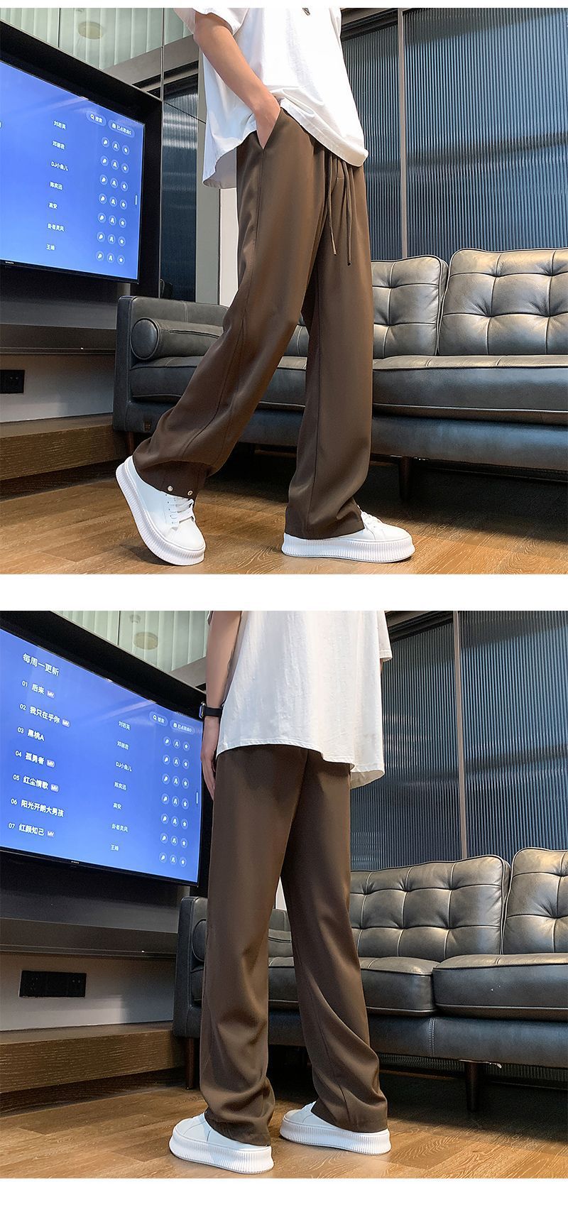 아메리칸 스타일 레트로 다크 브라운 캐주얼 바지 남성 가을 아이스 실크 얇은 디자인 센스 스트레이트 바지 하이 스트리트 바지