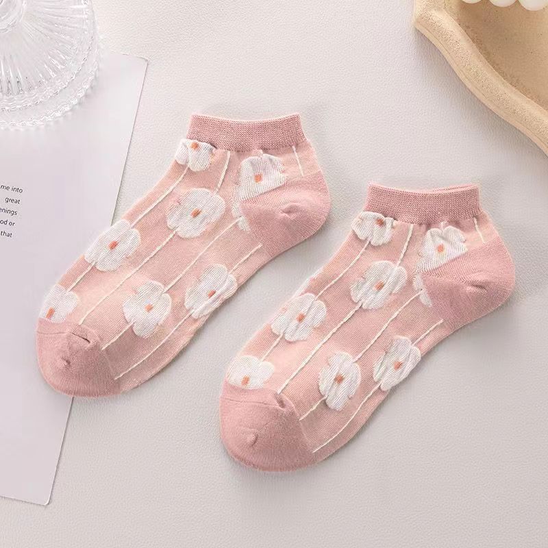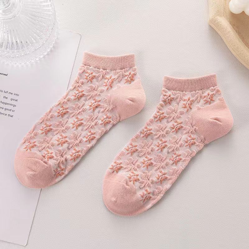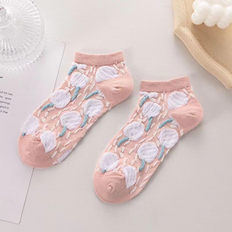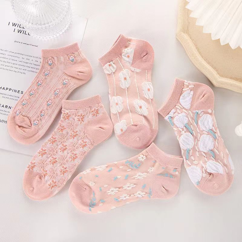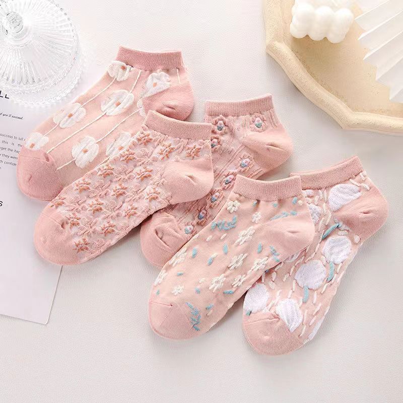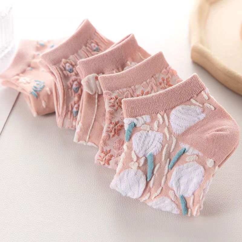 귀여운 레이스 양말 여성용 짧은 양말 유행 봄과 여름 달콤한 꽃 짧은 튜브 보트 양말 여성 양말 통기성 일본 스타일 올 매치 빈티지스토어 가기