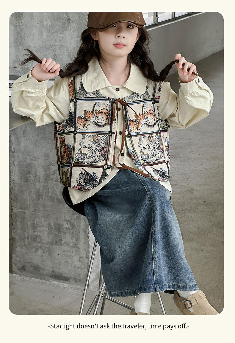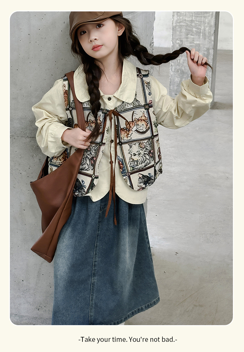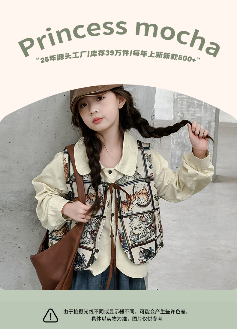모카 공주 소녀 조끼 가을 아동복 2024 새로운 한국 스타일 중대형 어린이 올 매치 조끼 탑 틈새 트렌디스토어 가기