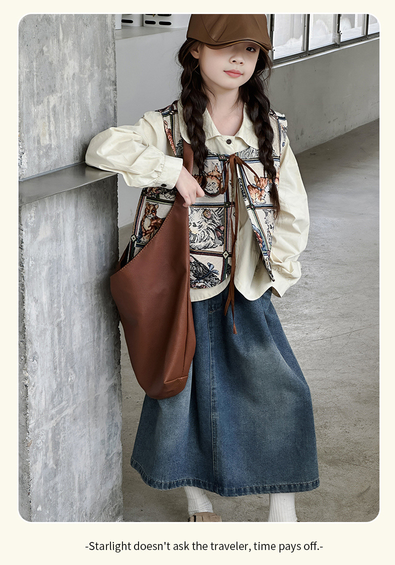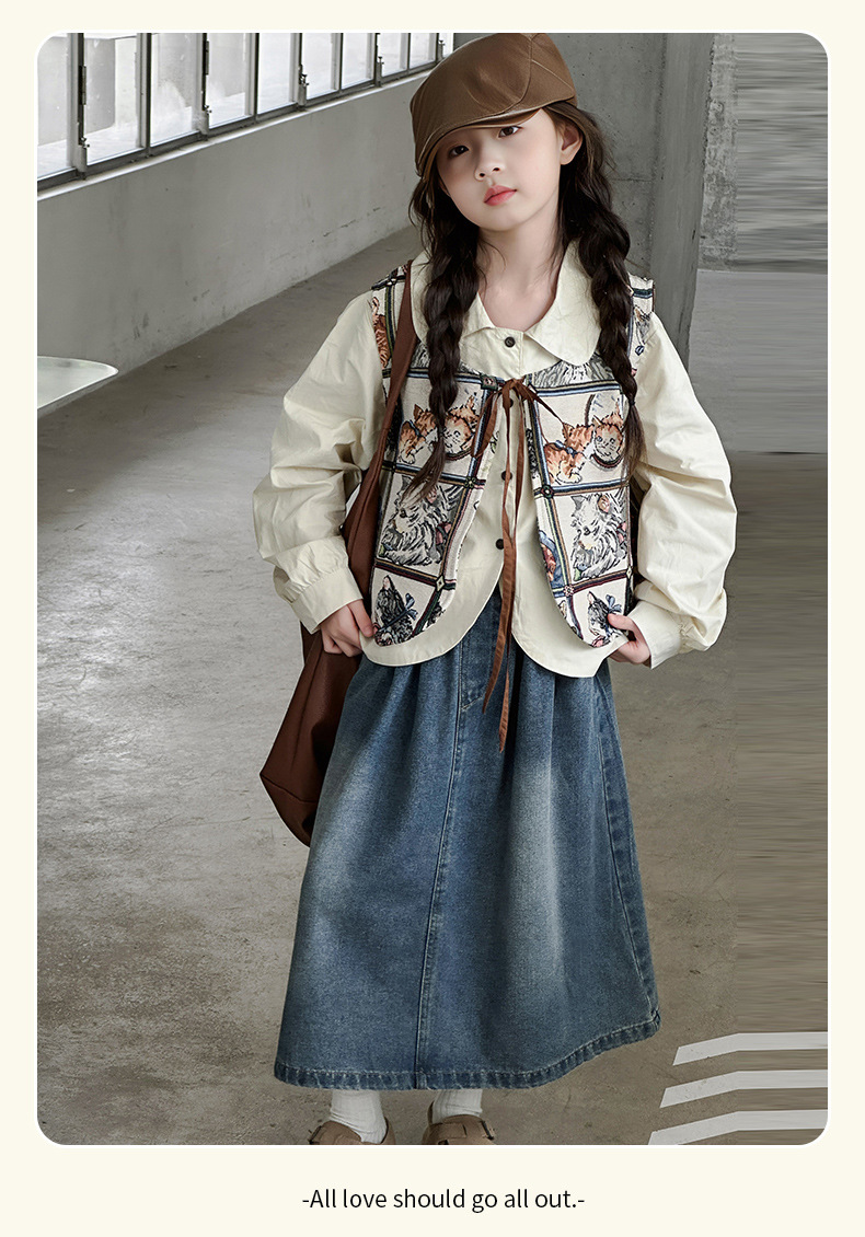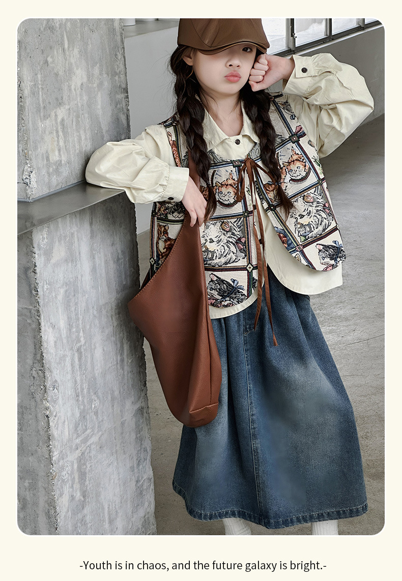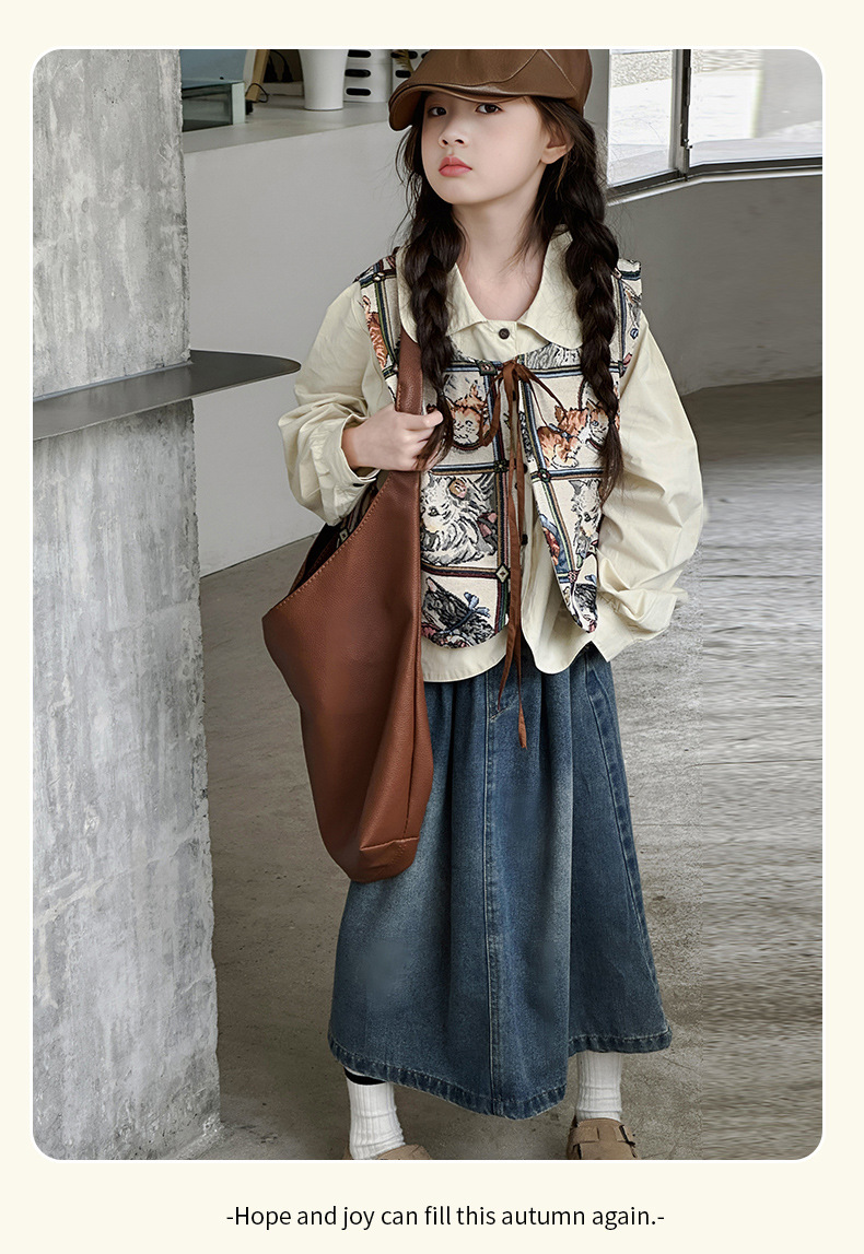 모카 공주 소녀 조끼 가을 아동복 2024 새로운 한국 스타일 중대형 어린이 올 매치 조끼 탑 틈새 트렌디스토어 가기